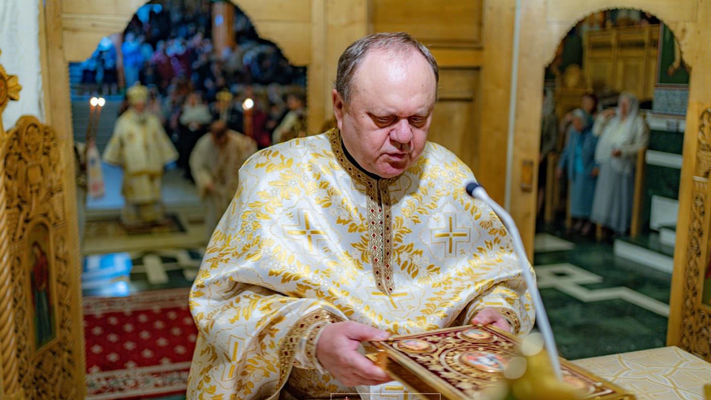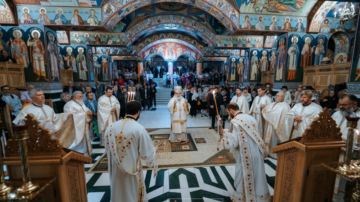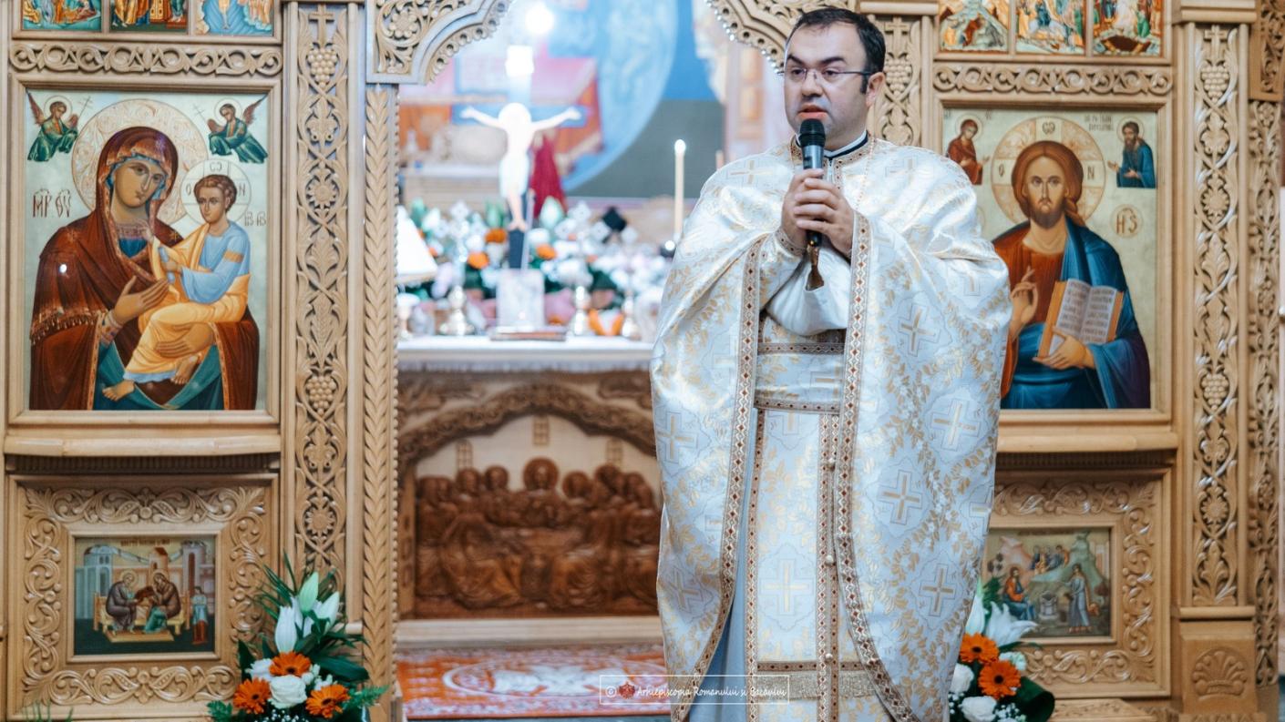 „În Crez spunem de fiecare dată Și S-a înălțat la cer și șade de-a dreapta Tatălui și iarăși va să vină cu slavă să judece viii și morții, a Cărui împărăție nu va avea sfârșit. Știm cu toții acest articol al Crezului și îl repetăm de fiecare dată nu numai în Sfânta Liturghie, ci și în rânduiala zilnică de rugăciune, ca o mărturisire de credință. Sfinții Părinți au pus în centrul evenimentelor mântuitoare actul Înălțării Domnului la cer. După a patruzecea zi de la Înviere, Domnul Iisus a plecat în Betania pentru a se înălța la cer. Ucenicii erau încă neîncrezători. Se aflau între bucurie și teamă, deși Îl văzuseră timp de 40 de zile. Hristos vine în mijlocul lor și le arată stigmatele Învierii pentru a-i convinge că este El și nu o fantasmă. În a patruzecea zi S-a înălțat la cer și pe când se înălța i-a binecuvântat, iar ei s-au întors în Ierusalim cu bucurie. Astăzi prăznuim această dimensiune teologică a Bisericii, această învățătură profundă. Hristos S-a înălțat la cer ca Fiu al lui Dumnezeu din eternitate și nu ne-a lăsat un vid, o absență, ci o prezență nevăzută, harul Duhului Sfânt care sălășluiește în noi. A lăsat Duhului Sfânt lucrarea de a desăvârși și conduce Biserica mai departe. Astăzi este hramul acestei Catedrale care e ridicată în inimile noastre și în palmele acestei zidiri, care este un locaș de închinare majestuos și noi îl considerăm că este o poartă a cerului și un loc de întâlnire cu Dumnezeu, pentru faptul că aici, duminical sau chiar zilnic, puteți intra să vă rugați potrivit programului liturgic stabilit de cei doi preoți, cu binecuvântarea noastră. Vă îndemn să trăiți această zi în toată plenitudinea ei, harică, teologică, liturgică și vă veți întoarce mai înălțați la casele voastre pentru că astăzi ne înalță și pe noi dacă credem în Hristos și credința noastră ne propulsează dincolo de limitele acestei lumi, ne propulsează în adevărul suprem care este metafizic și noi nu îl putem cuprinde în ființele noastre limitate”.
