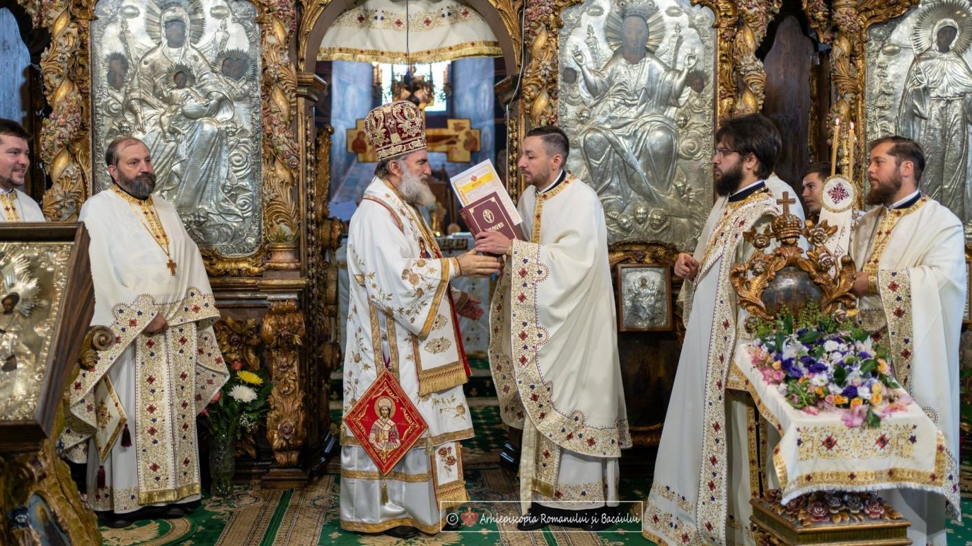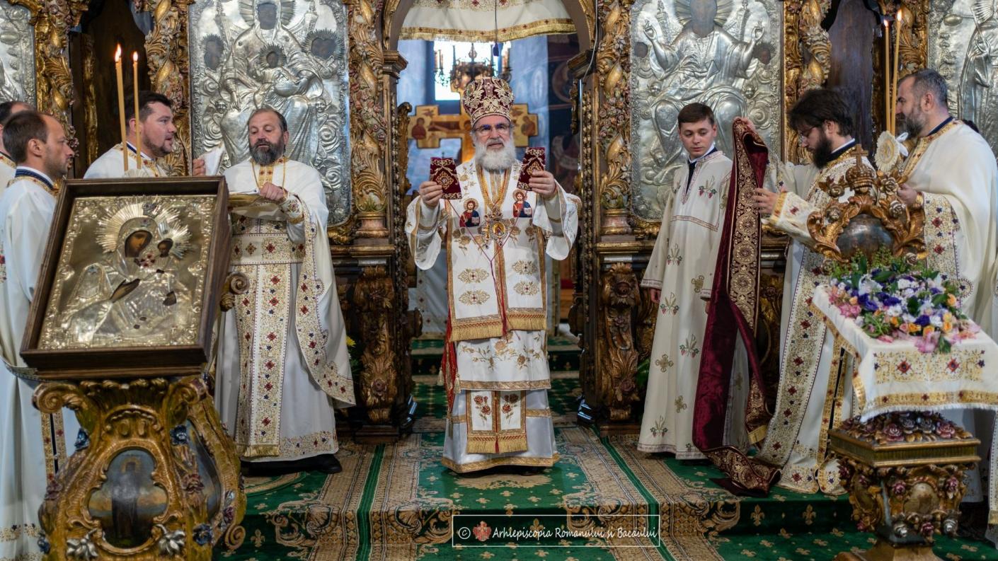În prima zi a Postului Adormirii Maicii Domnului, Înaltpreasfințitul Părinte Ioachim s-a regăsit în comuniune liturgică în Catedrala arhiepiscopală din Roman, săvârșind Sfânta Liturghie împreună cu soborul preoților din care a făcut parte părintele Ioan Bârgăoanu, protopop al Protopopiatului Onești, părintele Arhimandrit Andrei Ioniță, dar și preoți oneșteni. În cadrul Sfintei Liturghii, diaconul Soltănel Dumitru Ciprian a fost hirotonit în treapta de preot pe seama Parohiei Scăriga, Protopopiatul Onești, iar teologul Teriș Răzvan Cosmin a fost hirotonit diacon.