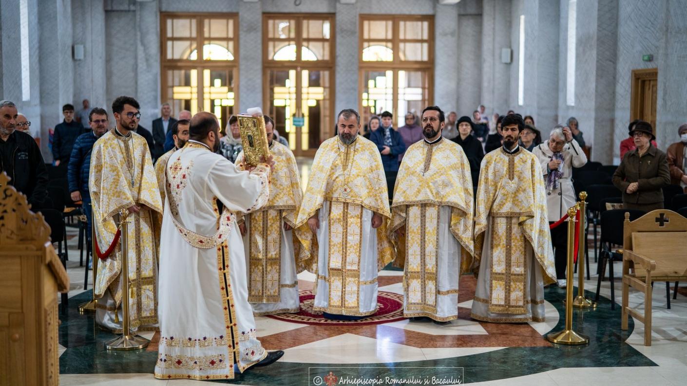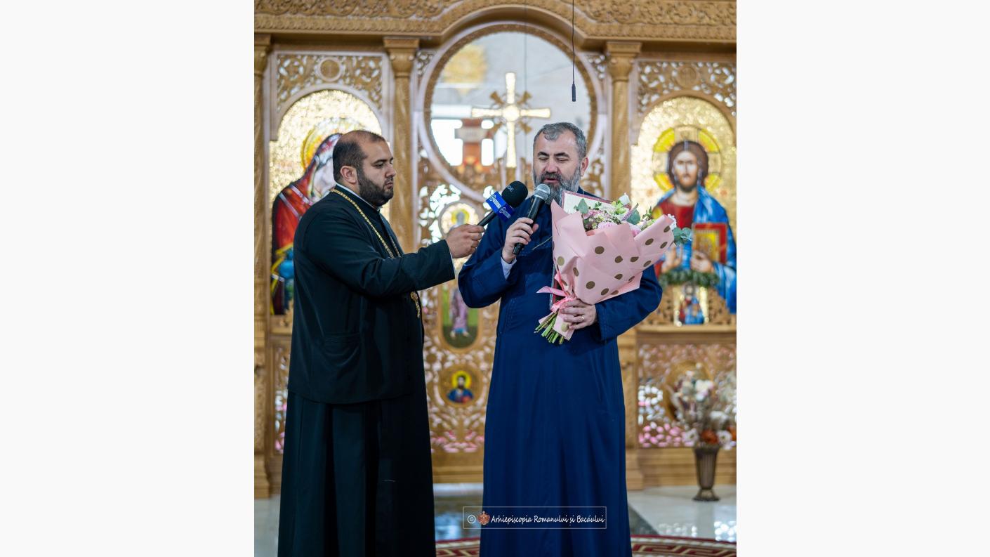 Marți, 23 mai 2023, în contextul Anului comemorativ al imnografilor și cântăreților bisericești, preotul Ioan Bârgăoanu, protopop al Protopopiatului Onești, cu binecuvântarea Înaltpreasfințitului Părinte Ioachim, Arhiepiscopul Romanului și Bacăului, a adresat, în cinstea smereniei, invitația Corului Academic Byzantion din Iași, de a participa la Sfânta și Dumnezeiasca Liturghie în Catedrala „Pogorârea Sfântului Duh” din Onești.