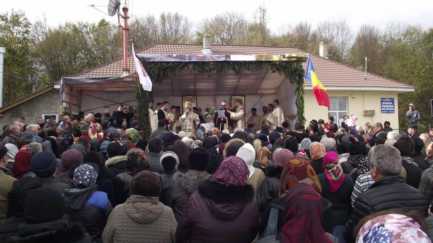Înălțată în doi ani, într-o comunitate modestă, fără posibilități materiale, dar cu o impresionantă disponibilitate sufletească, biserica având hramul ”Sfânta Treime” din Parohia Poiana Negustorului – Pădureni, poate fi considerată o mărturie palpabilă a modului în care Dumnezeu lucrează prin oameni pentru oameni. Sfântul locaș a fost sfințit astăzi, 29 octombrie. Însuși ierarhul, Înaltpreasfințitul Părinte Ioachim, Arhiepiscopul Romanului și Bacăului, a săvârșit slujba târnosirii, înconjurat de un sobor de preoți, la eveniment fiind prezentă toată suflarea din zonă de la copilași până la vârstnici. Eforturile de zidire a acestei ”scări către cer” au fost încununate de o veritabilă sărbătoare pentru comunitatea majoritar rromă, în mijlocul căreia păstorește un tânăr și vrednic slujitor al sfântului altar, preotul Răzvan Ioan Simion. De altfel, chiriarhul l-a hirotesit întru iconom stavrofor la propunerea preotului Vasile Cozma, protopop de Buhuși. ” Preotul Răzvan Ioan a dat dovadă de o maturitate sacerdotală, spirituală și administrativă, căci s-a angajat în fața lui Dumnezeu, la această lucrare. Astăzi am trăit bucuria sfințirii unei porți către cer. Această biserică este închinată Preasfintei Treimi, iar atunci când oferim lui Dumnezeu o biserică, ne oferim noi înșine Lui. Mulțumim că ne-a învrednicit să fim astăzi prezenți aici, la această sărbătoare deosebită pentru această comunitate”, a precizat Înaltpreasfinția Sa. Totodată, ierarhul i-a îndemnat pe credincioșii prezenți să se roage pentru înaintașii lor, să se roage pentru a rămâne în dreapta credință și a împlini poruncile lui Dumnezeu, ca El să se recunoască în noi și în faptele făcute spre slava Sa. La rândul său, parohul de la Poiana Negustorului și-a mărturisit gândurile de apreciere față de toți cei care i-au fost alături în acest demers binecuvântat și bineplăcut lui Dumnezeu și oamenilor. ”Este o bisericuță ridicată cu anevoie, într-un sat cu multe nevoi. Dăm slavă Preasfintei Treimi că ne-a învrednicit să finalizăm această lucrare. Vă mulțumesc Înaltpreasfinția Voastră că ați avut încredere și ne-ați fost alături”, a spus parohul de la Poiana Negustorului, care și-a exprimat recunoștința și față de preotul protopop. Menționăm că Parohia Pădureni, în cadrul căreia se regăsește și cătunul Poiana Negustorului, a fost înființată în anul 2015, din dorința Înaltpreasfințitului Părinte Ioachim ca populația de etnie romă din filia Poiana Negustorului, să poată beneficia de asistență religioasă și filantropică din partea bisericii.