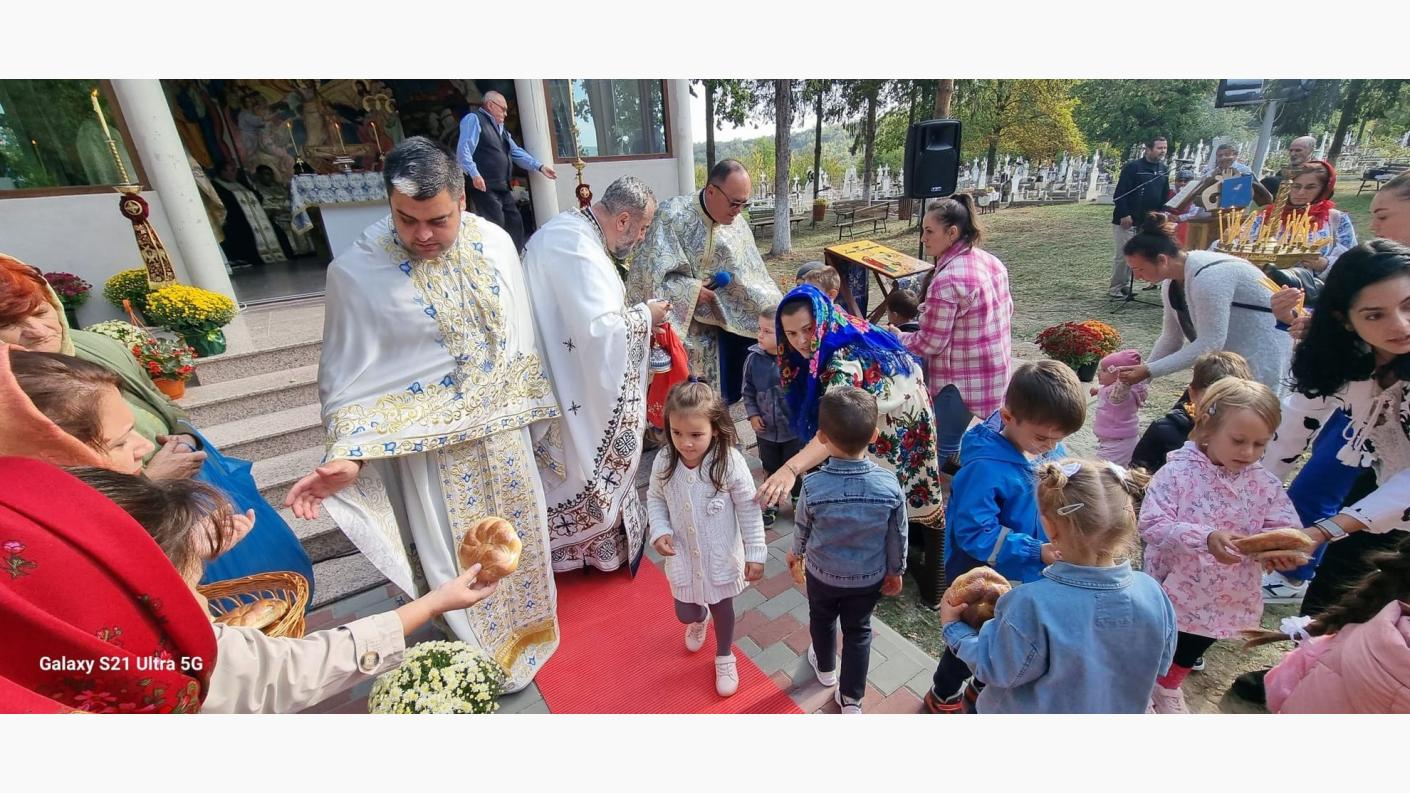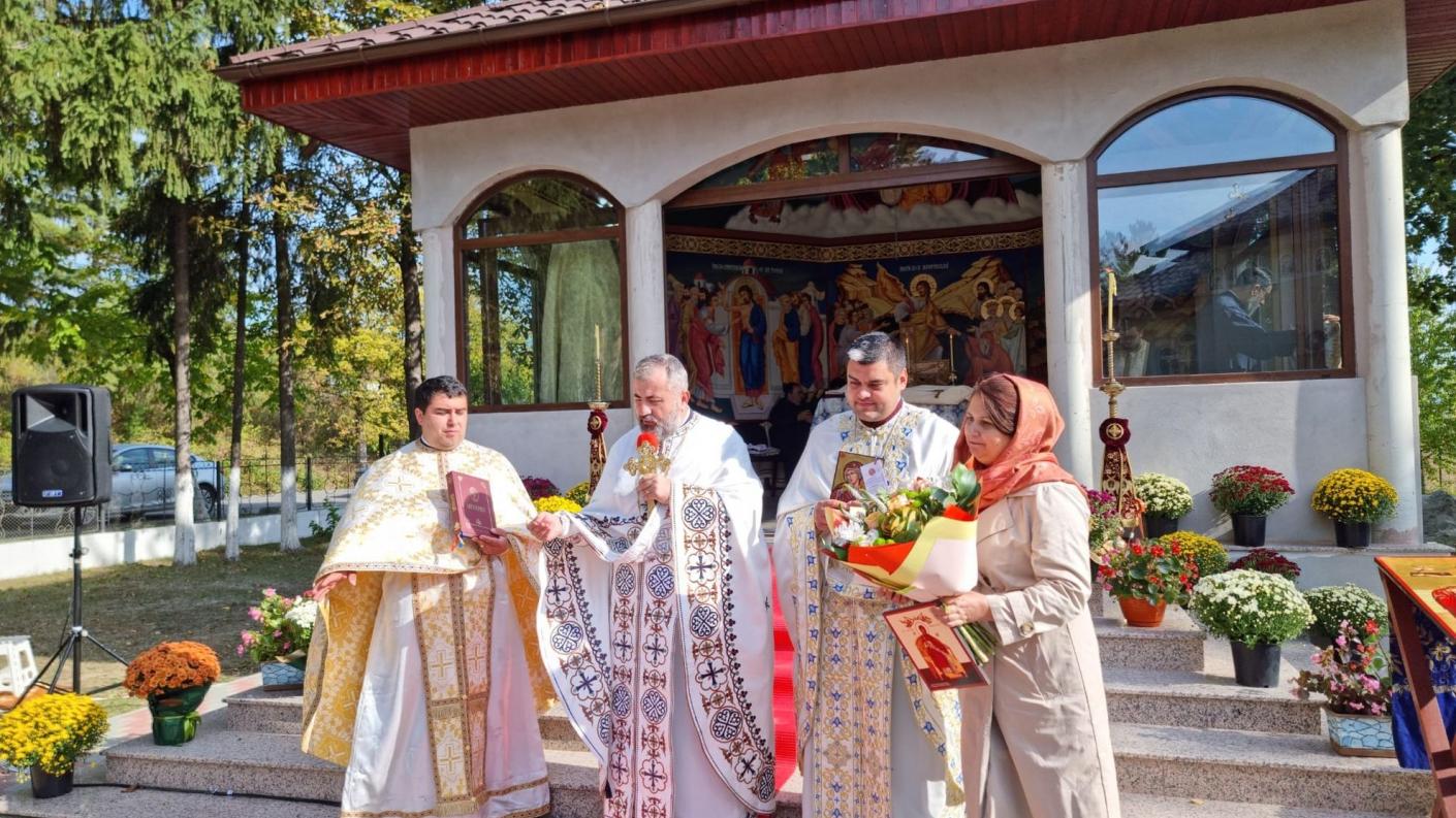 Bucuria prilejuită de sărbătoarea hramului a fost întregită de prezența copiilor de la grădinița din sat, care au primit Sfânta Euharistie și daruri din partea doamnei preotese, Mihaela Geaboc.