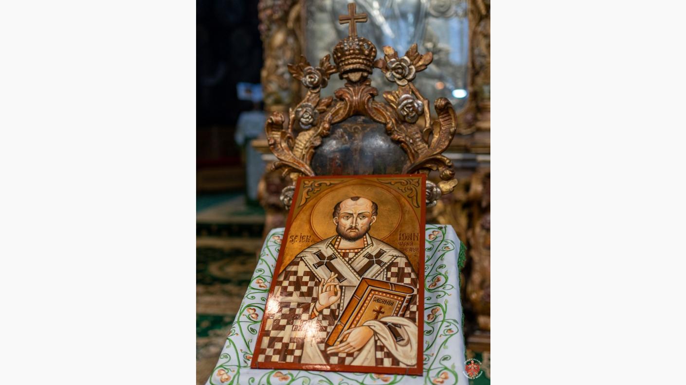 „Pe Sfântul Ioan Gură de Aur îl pomenim cu mare evlavie ori de câte ori săvârșim Sfânta Liturghie, pentru că scoatem o părticică în mod special pentru sfântul a cărui liturghie o săvârșim. El este de origine siriacă și s-a format la școala antiohiană, acolo unde a deprins tainele Filosofiei, ale Astronomiei și ale Teologiei, pentru ca mai târziu să ajungă la Constantinopol pentru a se pregăti întru ale Retoricii. Nu în cele din urmă ajunge patriarh al Constantinopolului. Arhipăstorirea sa nu a fost ușoară din cauza perioadei agitate cauzate de tulburările curentelor religioase ce se propagau atunci, fiind nevoit să susțină Biserica prin exemplul viețuirii sale ascetice, dar și prin cuvânt, fiind supranumit de Biserică Gură de Aur.