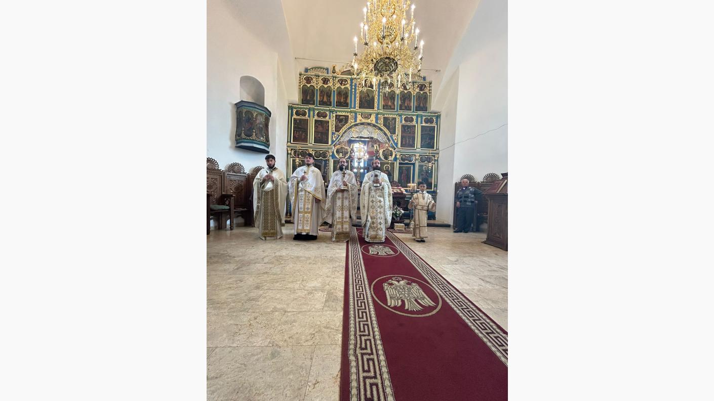 În zorii dimineții, dumnezeiasca Liturghie a fost săvârșită de către un sobor de preoți și diaconi aflați sub protia Părintelui Arhimandrit Nicolae Dănilă, starețul Mănăstirii Giurgeni. Această slujire întărește legătura dintre această biserică și cea a mănăstirii, după a cărei arhitectură s-a inspirat postelnicul Dimitrie Draghici atunci când a hotărât zidirea ei.