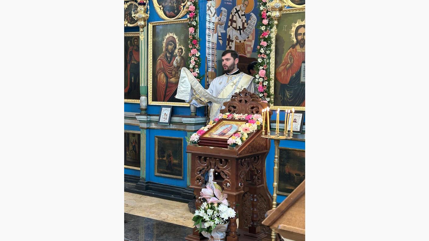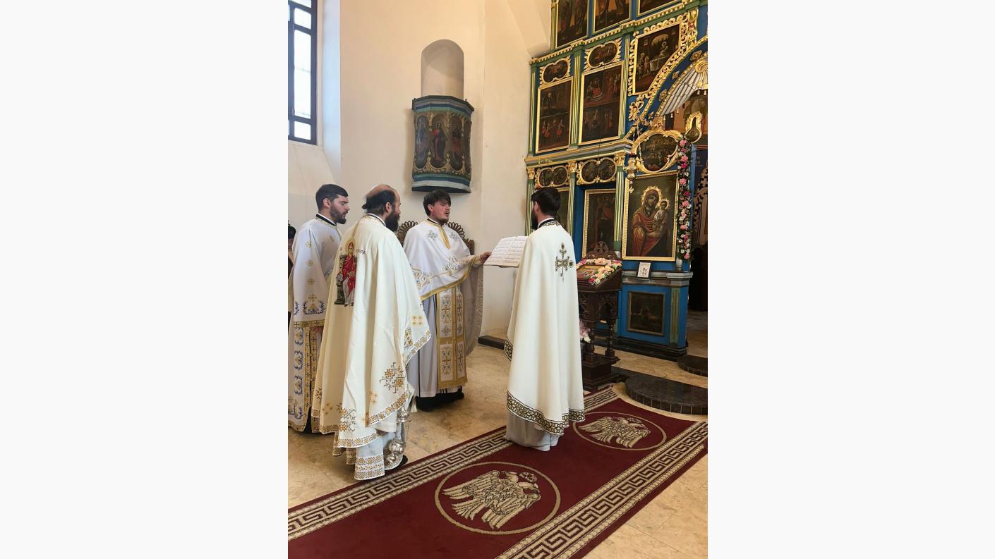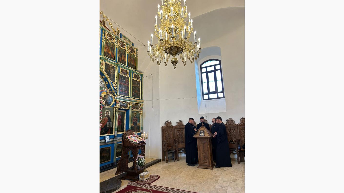 Cântarea la strană a fost realizată de către psalții grupului „Sfânta Mare Muceniță Chiriachi”, al Catedralei Episcopale din Huși, dimpreună cu domnul doctorand Ammar Awad, din Siria, absolvent al Școlii vocaționale „Sfântul Roman Melodul”, din localitatea Homs, locul natal al acestui mare sfânt imnograf.