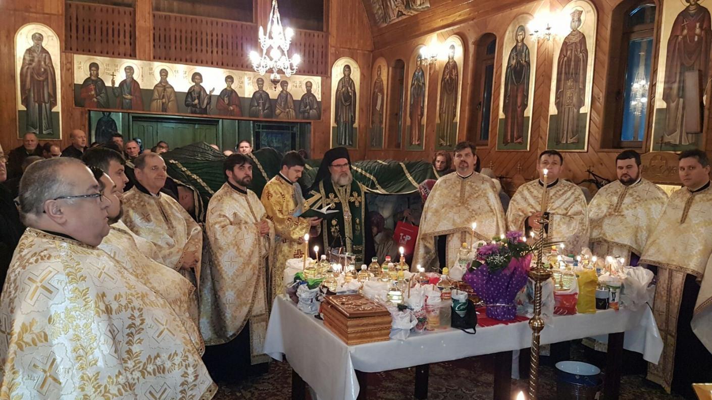 Soborul preoților și diaconilor ce au înconjurat Chiriarhul, la ceas de seară, în rugăciune sfântă prin oficierea Tainei Sfântului Maslu, a fost format din preoți parohi și slujitori din parohiile “Sfântul Ioan” și „Buna Vestire”, din municipiul Bacău, preoți de la parohiile din jurul mănăstirii, diaconi și mulțime de credincioși băcăuani.