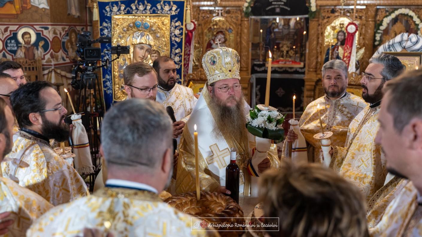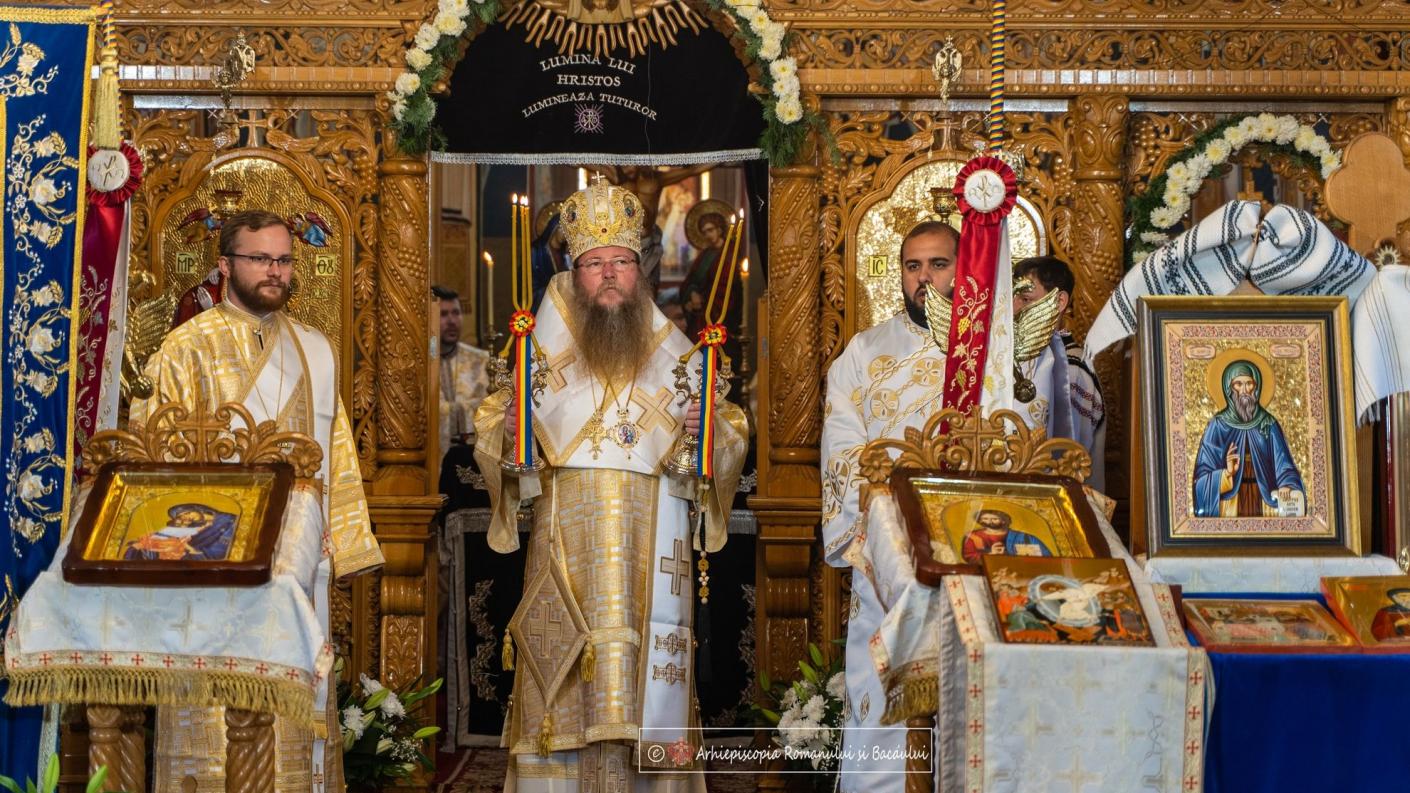Astfel cu binecuvântarea Înaltpreasfințitului Părinte IOACHIM Arhiepiscop al Romanului și Bacăului, în seara zilei de 11 octombrie s-a oficiat slujba Vecerniei unită cu Litia și slujba Utreniei. Miercuri, 12 octombrie, la primele ore ale dimineții, în singura biserica ce îl are ocrotitor pe Sfântul Simeon Noul Teolog s-a oficiat slujba Ceasurilor urmată de Sfânta și Dumnezeiasca Liturghie arhierească.