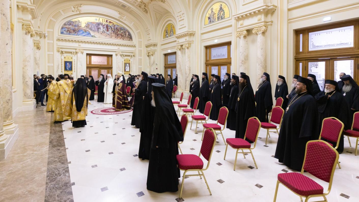 Ședința a fost precedată de slujba de Te Deum oficiată de Preasfințitul Părinte Teofil Trotușanul, Episcop vicar al Arhiepiscopia Romanului și Bacăului, în Sala Europa Christiana a Palatului Patriarhiei.