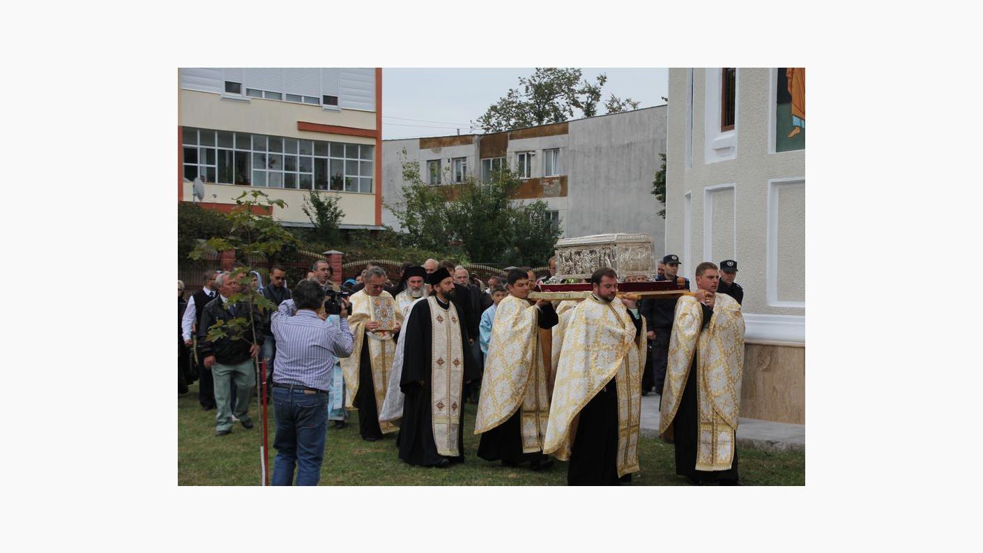Racla cu sfintele moaște de la Catedrala Arhiepiscopală din Roman a fost adusă de Preasfințitul Părinte Ioachim Băcăuanul în pelerinaj la biserica ”Sf. Nicolae” din Buhuși, în contextul resfințirii acestui sfânt lăcaș.