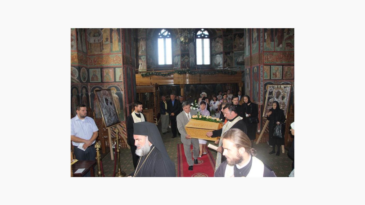 Delegația parohiei Blăgești a fost întîmpinată la Catedrala din Roman, a cărei ocrotitoare este Sfânta Parascheva de peste șase veacuri, de Preasfințitul Ioachim Băcăuanul, care a citit acatistul celei ”mult folositoare”.