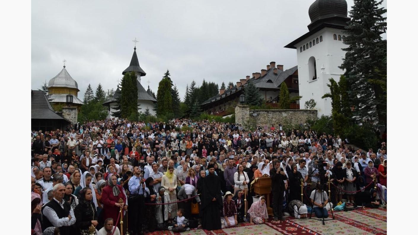 Trei mii de credincioși veniţi din toate colţurile ţării să o cinstească pe Sfânta ce s-a nevoit în munţii Neamţului s-au rugat și s-au închinat și la mormintele celor trei mari mari duhovnici ai Sihăstriei, Ilie Cleopa, Paisie Olaru și Ioanichie Bălan. Soborul de slujitori ce i-a înconjurat pe ierarhi a fost unul impresionant, peste 50 de preoţi şi diaconi rugându-se împreună în cadrul Sfintei Liturghii oficiate pe podiumul din faţa bisericii, în timp ce răspunsurile la strană au fost date de corul mănăstirii, Grupul psaltic „Sihăstria Carpaţilor“.