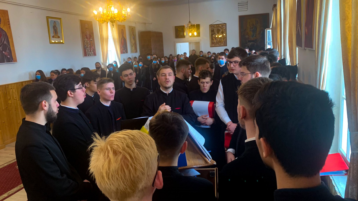 Sub protia părintelui arhimandrit, la slujba Vecerniei din Paraclisul Sf. Gheorghe au participat profesorii preoți din instituție și elevii, coriștii interpretând, sub coordonarea pr. Prof. Vlăduț Samoilă și arhid. Alexandru Tecucianu, și o serie de imne din slujba Sf. Trei Ierarhi. La sfârșitul slujbei, după un iscusit cuvânt de învățătură al părintelui Andrei Ioniță, în care au fost evocate momente din viața și misiunea Sf. Trei Ierarhi, a avut loc premierea concursului, participanții primind ca daruri dispozitive electronice de stocare și stimulente financiare.