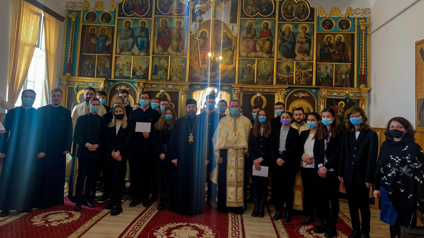 Joi, 27 ianuarie, de pomenirea Aducerii moaștelor Sf. Ioan Gură de Aur, cu binecuvântarea Înaltpreasfințitului Părinte Ioachim, Arhiepiscopul Romanului și Bacăului, elevii Liceului Teologic „Episcop Melchisedec” din Roman, coordonați de profesorii de discipline teologice din unitate, au participat la o serie de activități realizate în cinstea sf. Trei Ierarhi, patronii învățământului teologic.