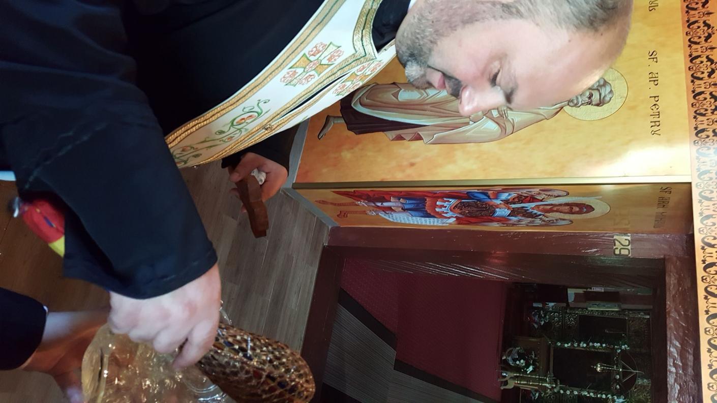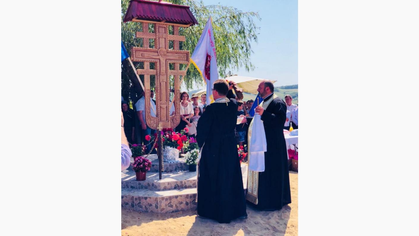 Astfel, după săvârșirea slujbei agheasmei, s-au sfințit icoanele așezate în pridvorul bisericii parohiale cu hramul „Nașterea Maicii Domnului”, după ce în prealabil s-au desfășurat mai multe lucrări de reabilitarea a acestui pridvor, iar în continuare s-a săvârșit slujba de sfințire a troiței executată în stil maramureșan din lemn de stejar sculptat. Cei prezenți s-au închinat cu evlavie Cinstitei Cruci și i-au pomenit în rugăciune pe toți cei care au contribuit la realizarea acesteia, precum și pe preoții slujitori și ctitorii trecuți în veșnicie. (Pr. Abageru Vasile)