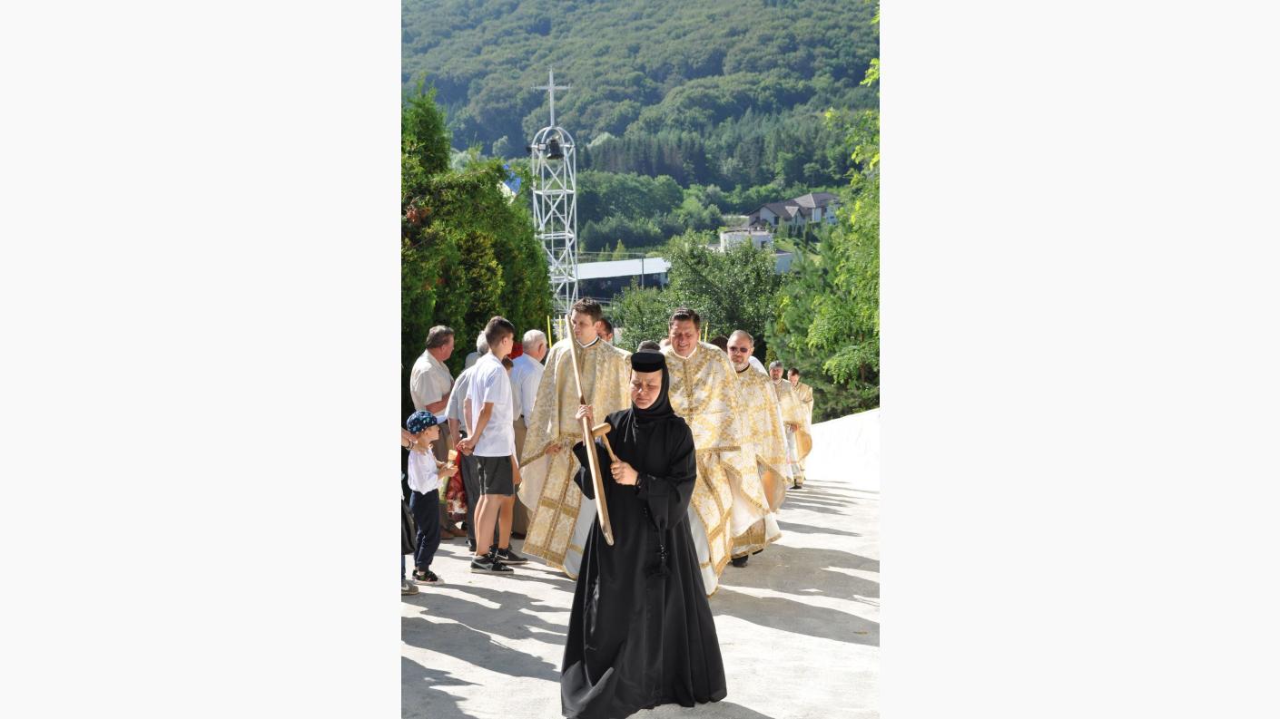 Un impresionant sobor de preoți din cuprinsul Eparhiei Romanului și Bacăului, alături de numeroși pelerini și reprezentanți ai autorităților locale, au participat vineri, 22 iulie, la hramul paraclisului Mănăstirii ”Acoperământul Maicii Domnului” de la Valea Budului. Înainte de oficierea Dumnezeieștii Liturghii, Înaltpreasfințitul Ioachim a sfințit pictura paraclisului ,,Sfânta Mironosiță Maria Magdalena” ce întregește ansamblul monastic al mănăstirii - metoc chiriarhal, consfințind prin aceasta lucrarea jertfelnică a obștii monahale de pe ”Meteora” Bacăului. De altfel, ierarhul a adus spre închinarea credincioșilor și a pelerinilor racla cu părticele din sfintele moaște ale Sf. Mc. Pantelimon și ale Sfântului Mc. Teodosie de la Brazi, care vor rămâne permanent în acest locaș de rugăciune. Sfintele moşte au fost purtate în procesiune la biserica mare a mănăstirii unde a fost săvârşită Sfânta Liturghie Arhierească. ”Ne-am împărtășit din potirul dragostei și mulțumim tuturor celor care ne-au ajutat la această sărbătoare. Să nu uităm că, întotdeauna, la umbra crucii găsim binefacere și binecuvântare”, a menționat, printre altele Înaltpreasfințitul Ioachim în cuvântul său de învățătură, felicitându-i pe toți cei care s-au implicat în organizarea acestui eveniment, în mod deosebit pe maica stareță stavrofora Magdalena Budeanu. La rândul lor, reprezentanții autorităților locale din Mărgineni și-au exprimat mulțumirea față de frumoasa colaborare cu Biserica. ”Vă mulțumim Înaltpreasfinţia Vostră, în primul rând, că aţi adus mai multă rugăciune în comuna noastră şi ne apropiaţi cât mai mult de Dumnezeu prin lucrarea sfinţitoare şi învăţătorească pe care o desfăşuraţi. Vă asigurăm de respectul, preţuirea şi ajutorul nostru, şi ne dorim o colaborare rodnică în desfăşurarea a cât mai multe proiecte social-filantropice şi culturale. Să dea Bunul Dumnezeu să ne revedem la cât mai multe evenimente de această importanţă, adică sfinţitoare, înălţătoare şi ziditoare de suflet”, a menționat Gabriela Plăcintă, reprezentantul autorității locale. (Pr. Flavius Balaban, pr. Constantin Gherasim)