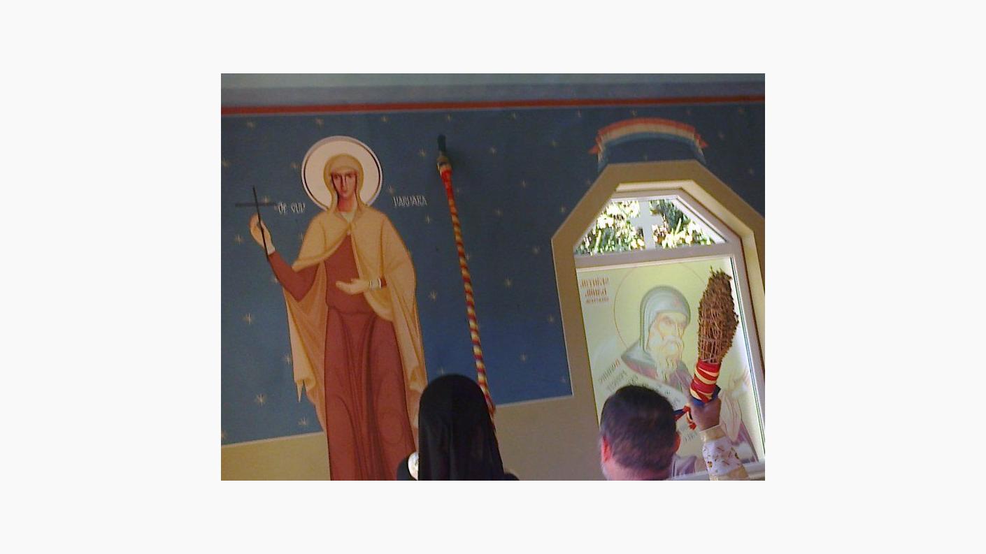 Pictura a fost realizată în tehnica tempera de către pictorii Florin şi Niculina Prina, cu ajutorul finaciar al P.C. Arhimandrit Epifanie Bulancea de la Mănăstirea Măgura Ocnei. Aşezământul deserveşte atât Centrul rezidenţial de îngrijire a persoanelor vârstnice cât şi Parohia Hârja.