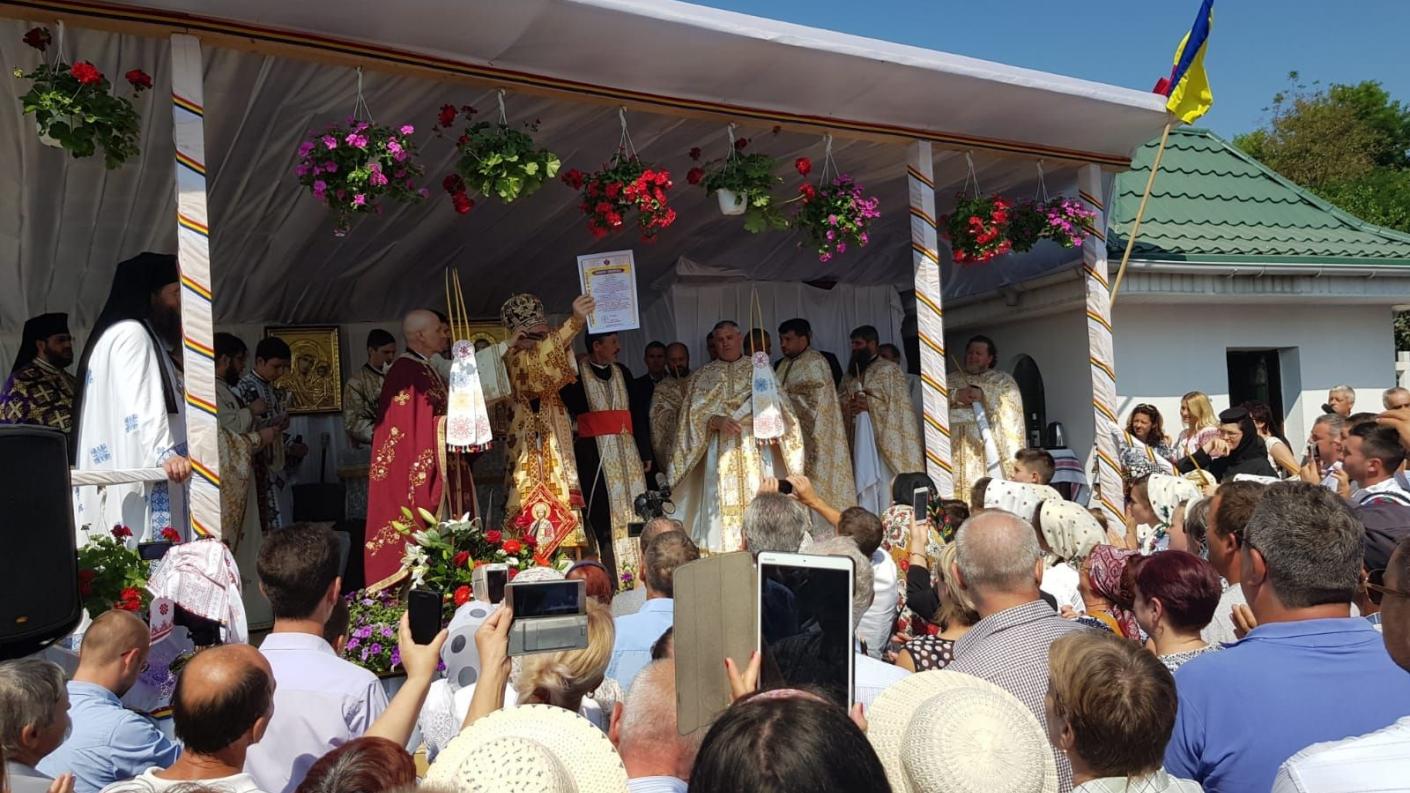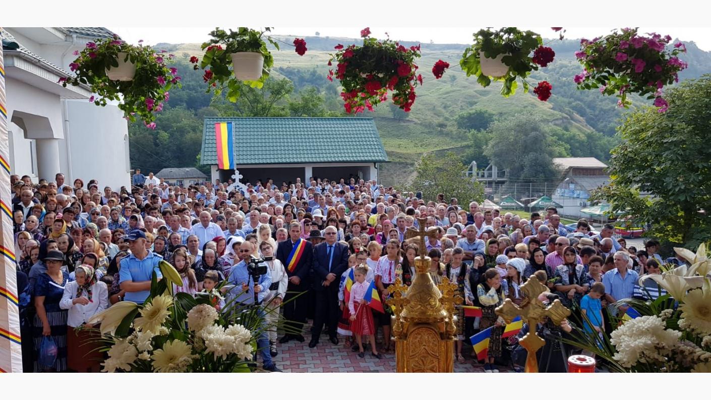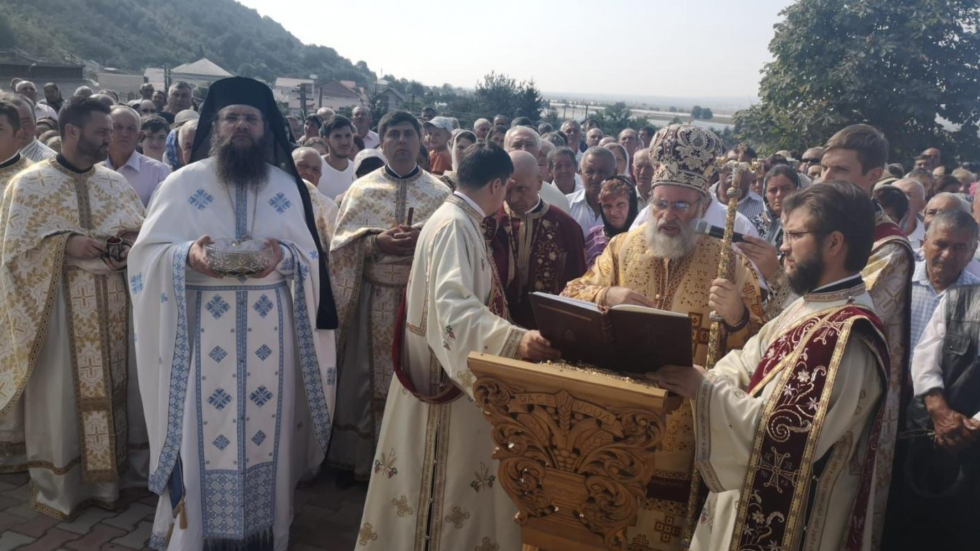 Numeroși credincioși, la ceas de sărbătoare, au fost prezenți la slujba de sfințire a locașului de cult săvârșită de Înaltpreasfințitul Părinte Ioachim, Arhiepiscopul Romanului și Bacăului, înconjurat de un sobor de preoți coordonat de părintele protoiereu Negoiță Ioan.