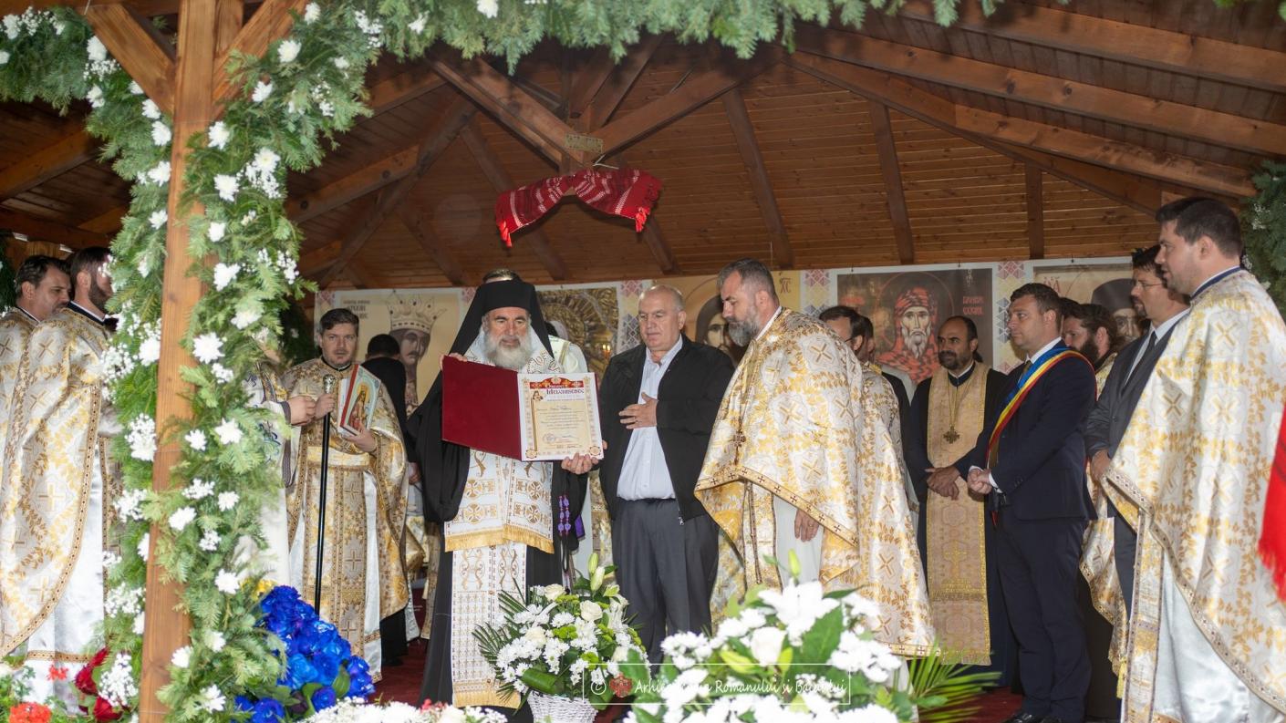Tot după Sf. Liturghie, a urmat oferirea distincțiilor de vrednicie personalităților care au sprijinit Asociația de la Hârja pe parcursul celor 10 ani de activitate și oferirea rangurilor onorifice pentru șase preoți din Protoieria Onești implicați în voluntariatul social, de către Înaltpreasfințitul Părinte Ioachim, Arhiepiscopul Romanului și Bacăului.