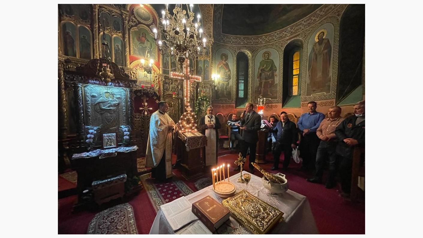 În continuare, cuvântul a fost luat de către părintele paroh Gheorghe: „Vă spunem bun venit în mijlocul nostru, fiind pentru prima dată în sânul comunității noastre! Cu atât mai mult se cuvine să slujim Taina Sfântului Maslu, contextul actual fiind unul tensionat și știind că și anul acesta este închinat de către Patriarhia Română rugăciunii și importanței acesteia în viața creștinului și a Bisericii. Hramul acestui centru sfințit astăzi nu este ales întâmplător întrucât spațiul casei de prăznuire a fost sfințit de către ierarhul nostru în anul 2004, Anul Omagial al Sfântului Ștefan cel Mare”.