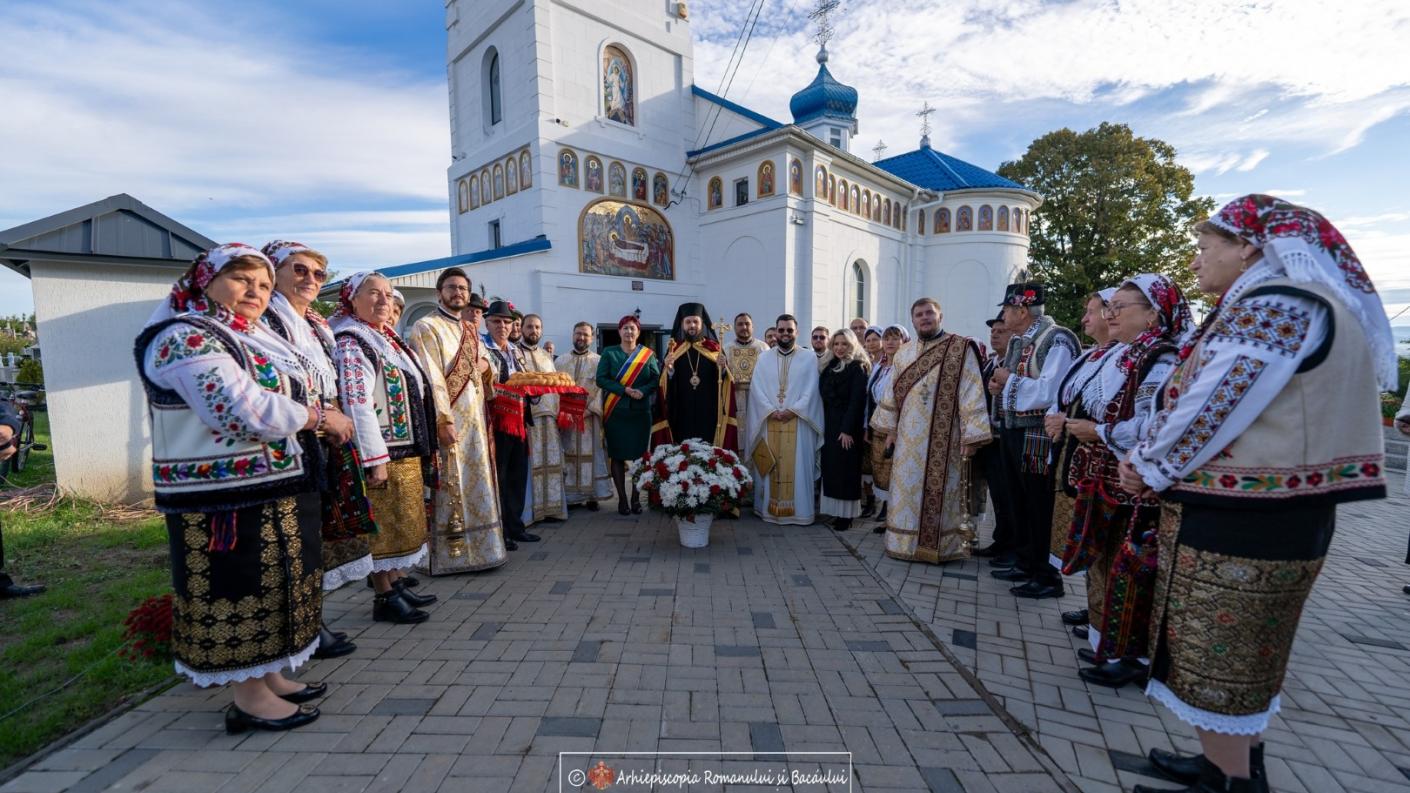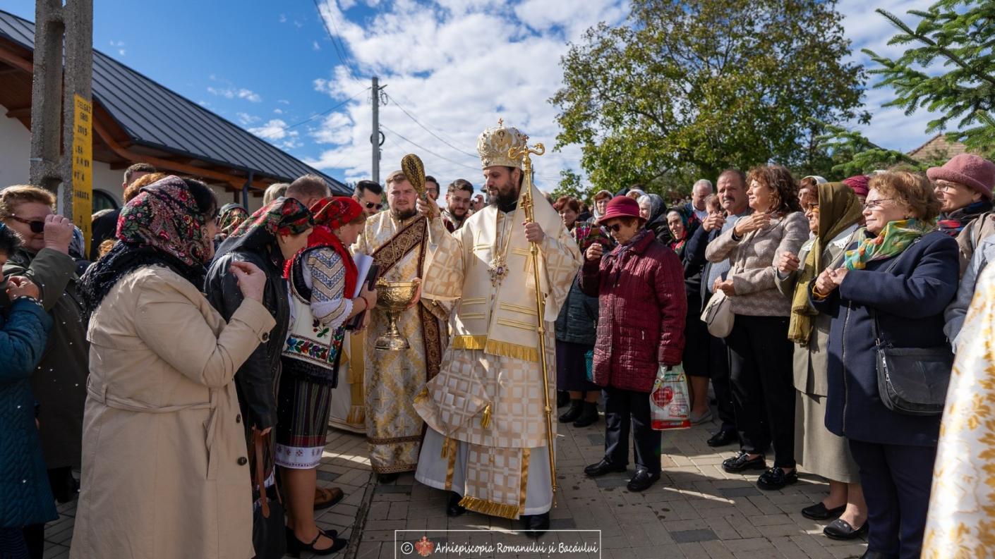 Duminică, 5 octombrie 2025, credincioșii Parohiei „Adormirea Maicii Domnului” – Dealu Nou, comuna Sărata, Bacău, au trăit momente de aleasă bucurie duhovnicească în prezența Preasfințitului Părinte Teofil Trotușanul, Episcop-vicar al Arhiepiscopiei Romanului și Bacăului. Ziua a început cu Sfânta Liturghie arhierească, săvârșită de ierarhul de la Roman înconjurat de un sobor de preoți și diaconi, din care au făcut parte și părintele protopop Eugen Ciprian Ciuche, părintele consilier eparhial Ilarion Mâță, pr. paroh Răzvan-Dimitrie Radu, pr. Cristinel-Vasile Balcanu, cel care a început lucrările la așezământul care a fost sfințit astăzi.