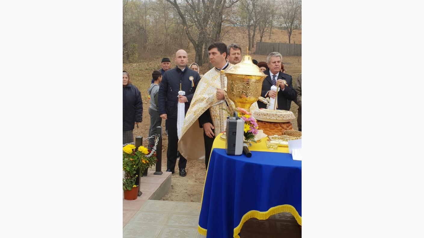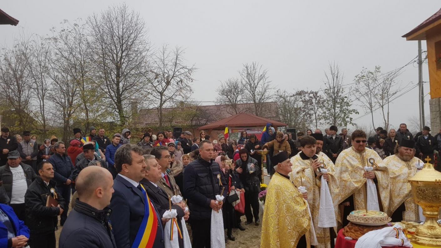 Părintele Vasile Abageru, secretar al Protoieriei Sascut, delegat din partea părintelui Protopop Negoiță Ioan, împreună cu un sobor de preoți a săvârșit slujba de sfințire a celor două edificii. Momentul sfințirii a fost precedat de alocuțiunile pe care distinșii oaspeți dintre autoritățile centrale și județene le-au rostit pentru a sublinia importanța momentului festiv.
