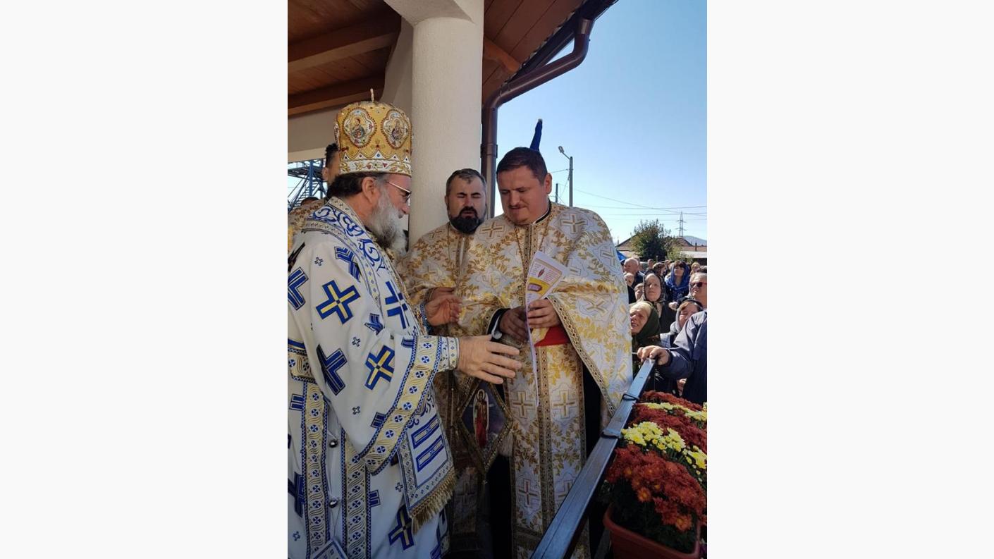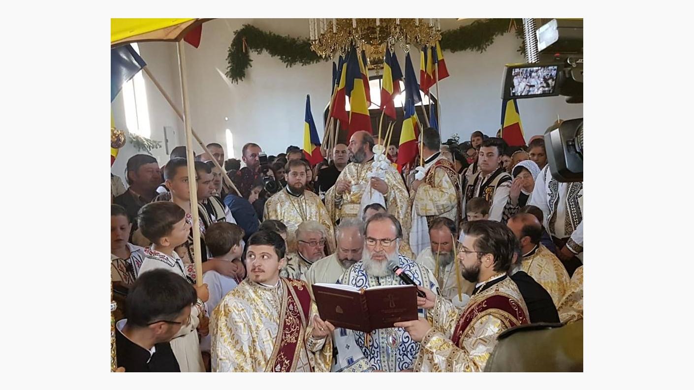 La Dumnezeiasca Liturghie în cadrul căreia s-a sfințit noul locaș de închinare, sub protia Înaltpreasfințitului Părinte Ioachim, alături de părintele Ioan Bârgăoanu, Protopop al Protopopiatului Onești, de numerosul sobor de stareți ai mănăstirilor și schiturilor din împrejurimi, preoți de pe valea Trotușului și diaconi, s-au alăturat invitați de seamă, reprezentanți ai autorităților locale, ingineri, arhitecți, constructorii bisericii și mulțime de credincioși.