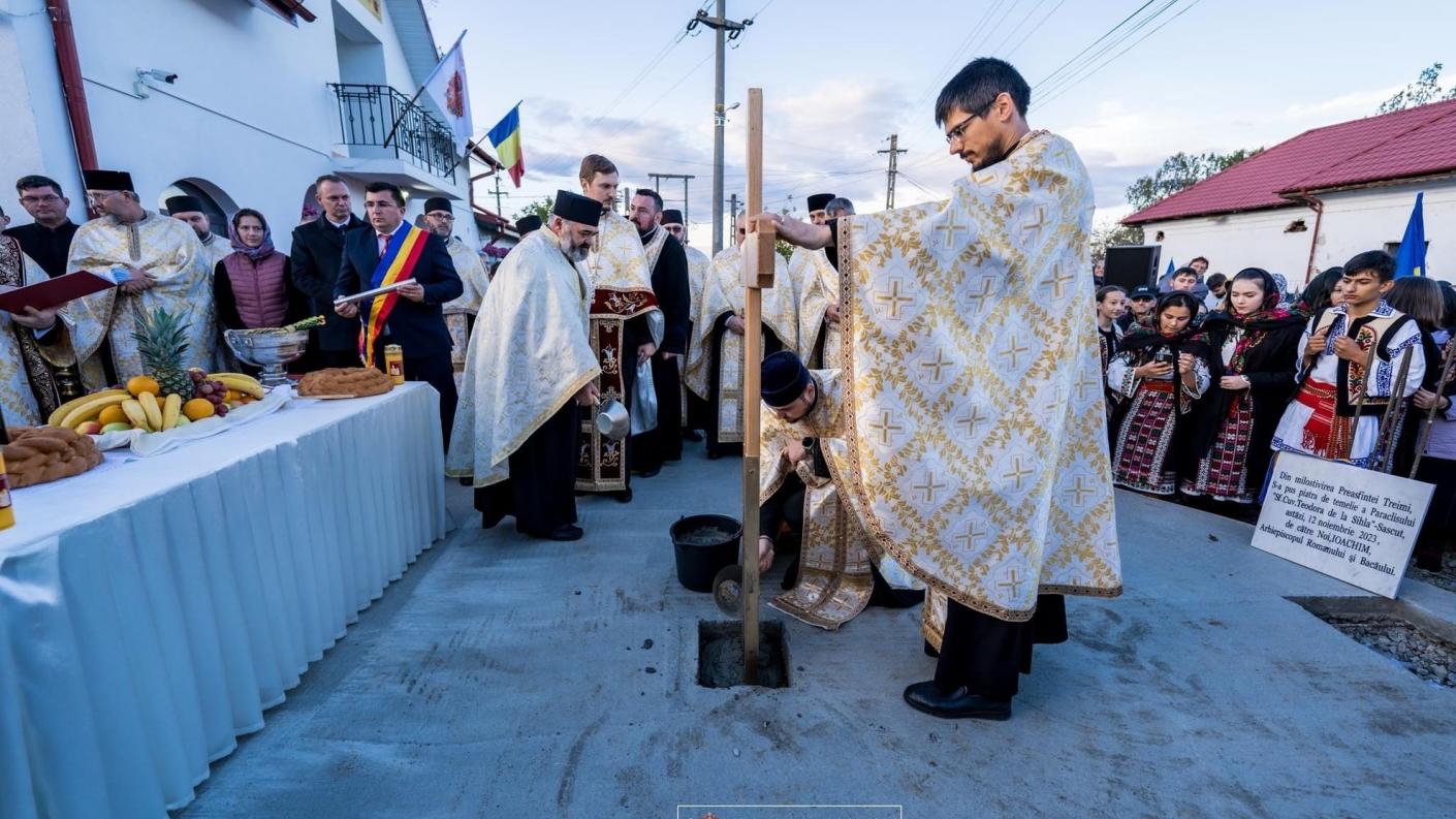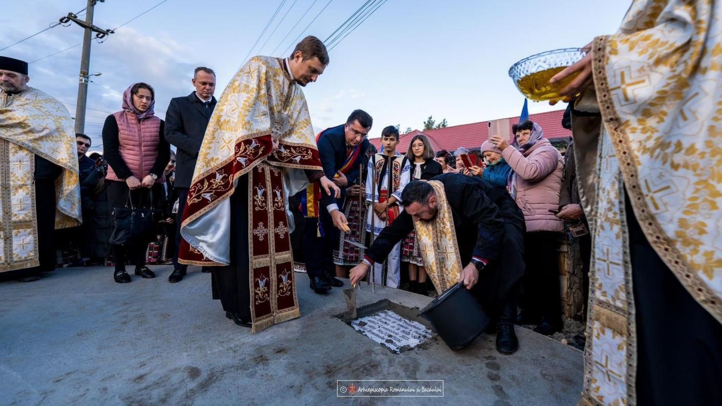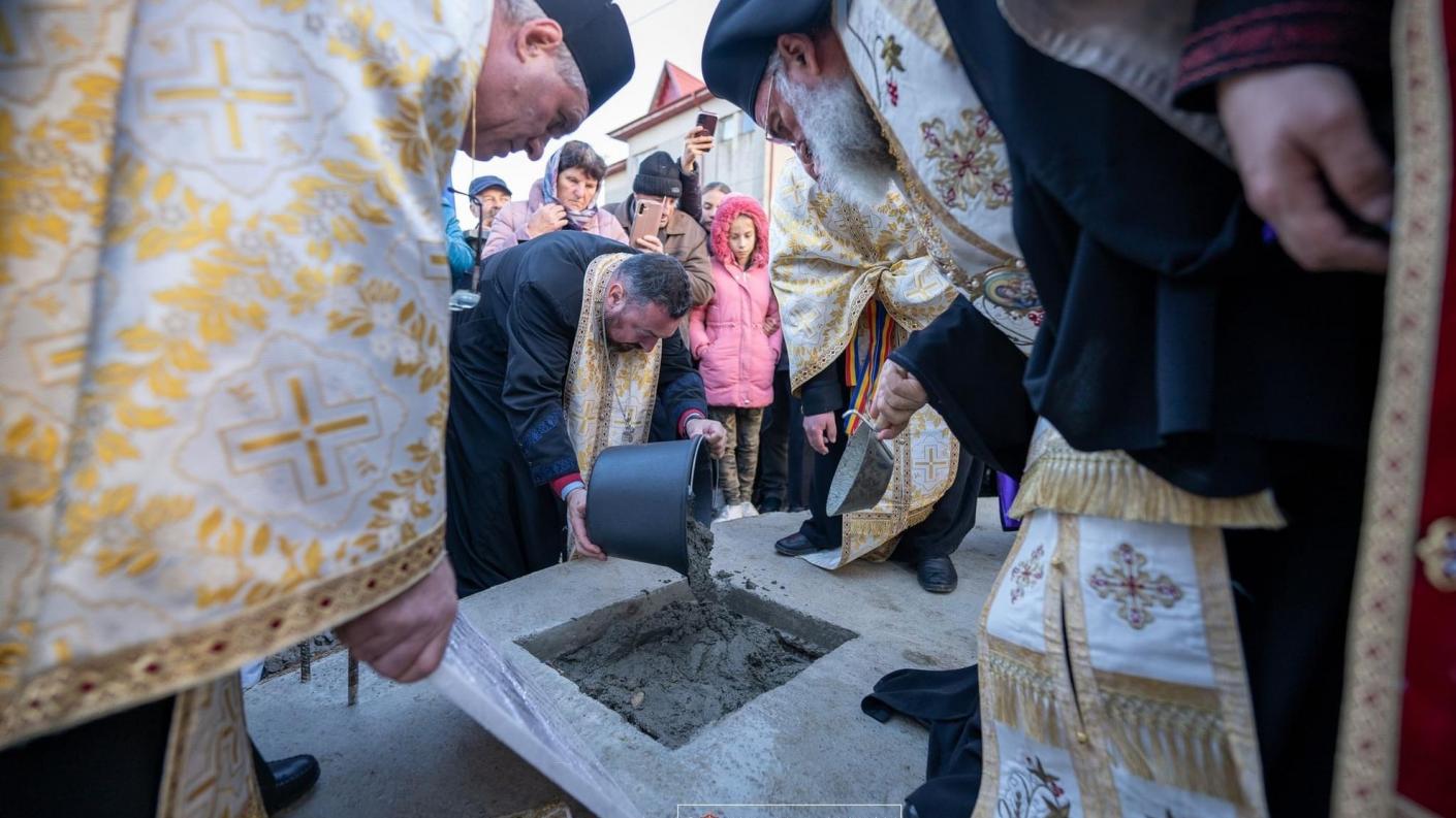 Ierarhul locului a binecuvântat toată suflarea prezentă și a vorbit despre însemnătatea punerii pietrei de temelie unui sfânt lăcaș: