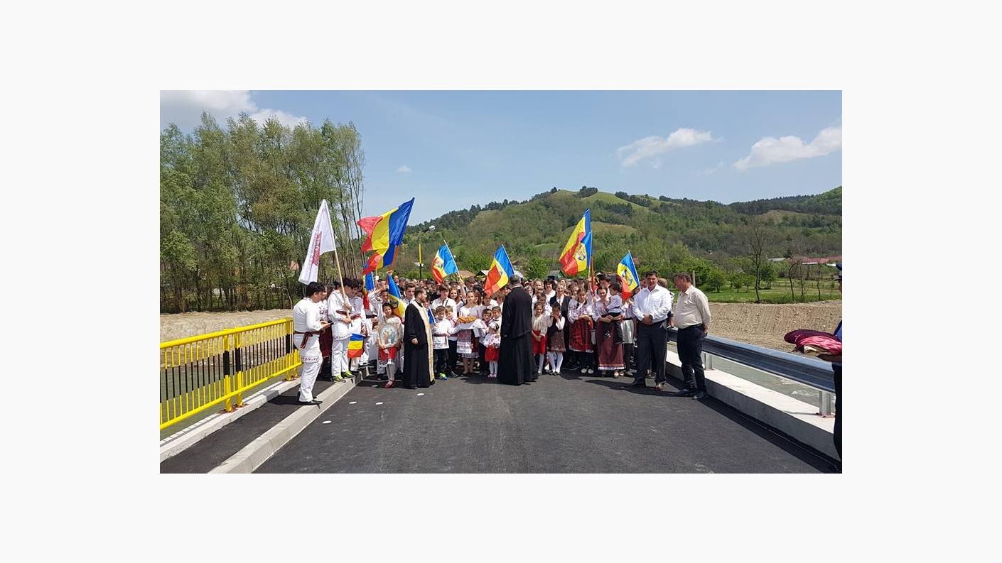 Slujba de sfințire a fost oficiată de un sobor de preoți din Comuna Dofteana sub protia părintelui Ioan Bârgăoanu, Protopop al Protoieriei Onești și în prezența domnului Ioan Bujor, Primar al comunei Dofteana. După slujba de sfințire, în cadrul căreia părintele protopop a propus ca hram și Sfânt ocrotitor al podului, pe Sfântul Ioan Botezătorul, primarul comunei a tăiat panglica inaugurală, avându-i alături pe doamna deputat Theodora Șotcan, domnul Silviu Pravăț, vicepreședinte al Consiliul Județean Bacău și pe domnul Ciprian Bucur, fost ministru. Totodată au mai fost prezenți la eveniment inginerul proiectant Băduleț Răzvan și inginerii constructori Panait Costică și Andrieș Sorin.