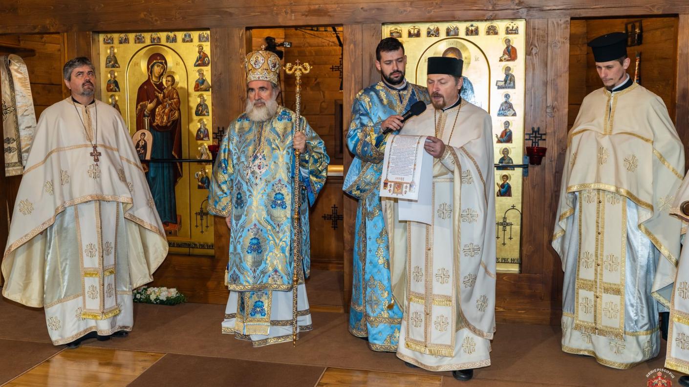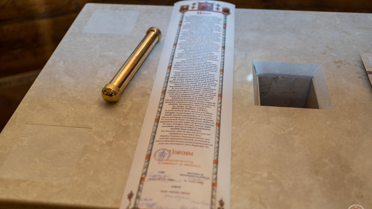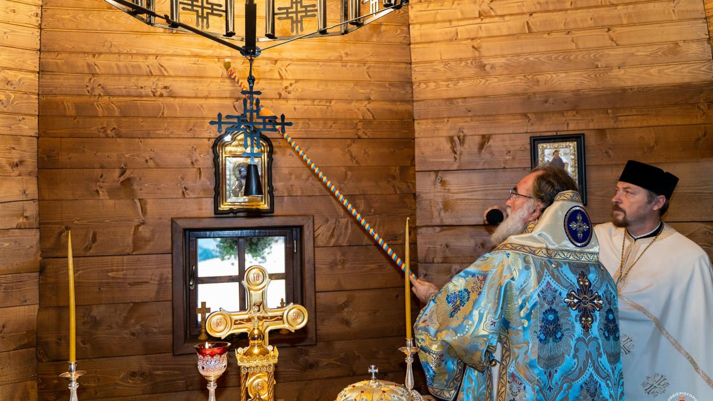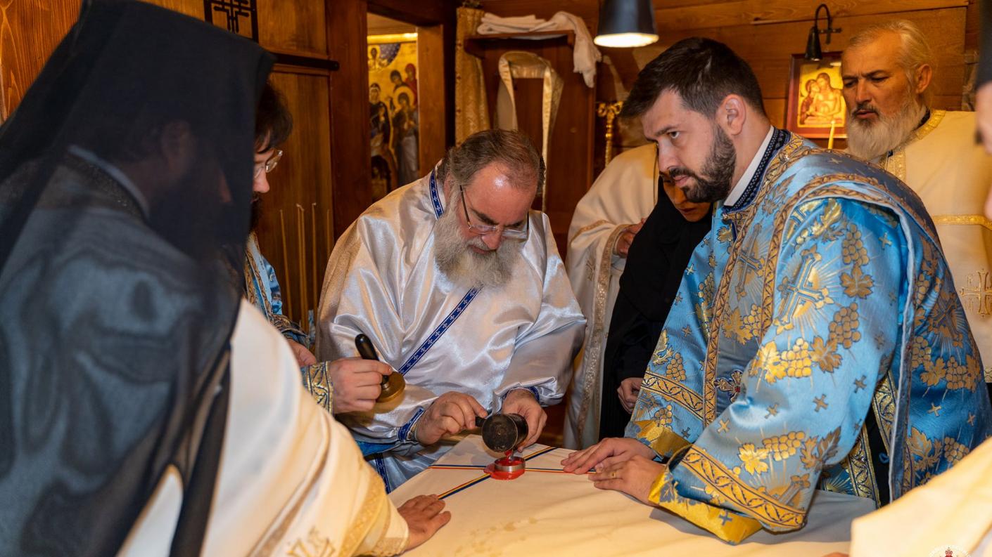 După oficierea Sfintei Liturghii în Biserică cu hramul Adormirii Maicii Domnului, soborul de preoți slujitori, însoțiți întreaga obște, s-a deplasat în procesiune până la biserica cea noua, ridicată între anii 2013-2016. Aici, Înaltpreasfințitul Părinte Arhiepiscop Ioachim a oficiat slujba de sfințire, la finalul căreia a hirotesit ca stavroforă pe Maica Stareță Evloghia Chirvase și ca iconom stavrofor pe părintele Alexie Andrei Huiban, pe seama parohiei Coşnea, Protopopiatul Moinești.