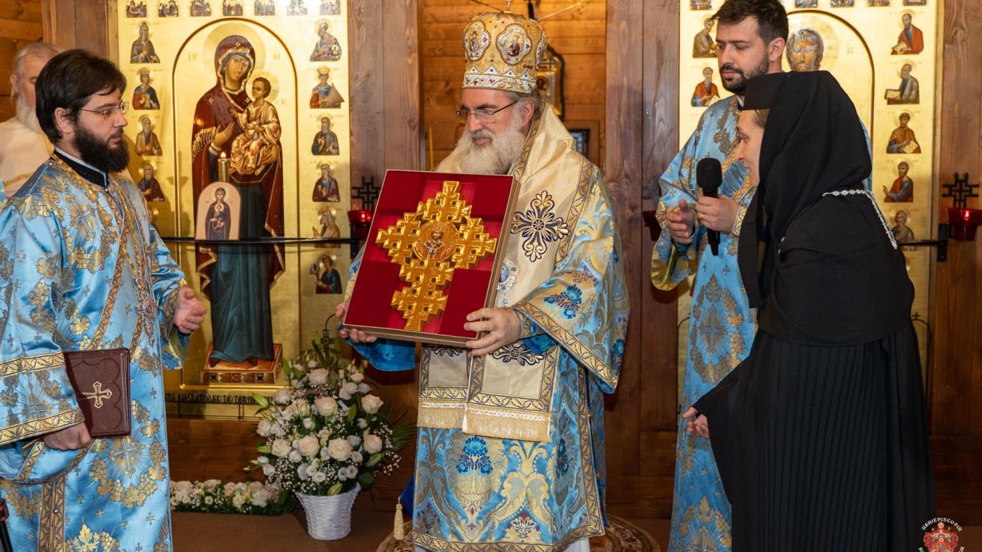 În încheiere, Maica Stareță, stavrofora Evloghia Chirvase, a mulțumit chiriarhului pentru prezență și binecuvântare, i-a oferit în dar o cruce pictată în atelierul Mănăstirii Diaconești, menționând în cuvântul său că: