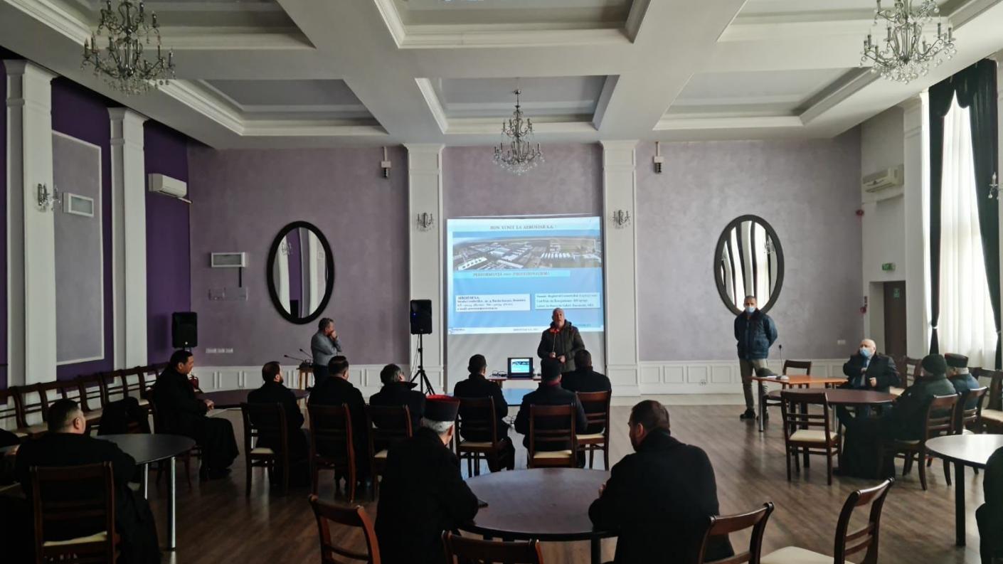 Compania Aerostar S.A. este cea mai performantă forță din industria aeronautică română și de asemenea este cel mai mare angajator din Bacău și unul dintre cei mai mari din regiunea de dezvoltare Nord-Est, având o pondere foarte mare a exporturilor și fiind cel mai mare pol financiar pentru orașul Bacău. După un scurt instructaj de protecție, preoții au fost invitați spre a vizita linia de producție a pieselor aeronavelor, dar și pentru a vizita halele în care avioane din întreaga lume vin pentru a efectua reparațiile la termen. În urma vizitei slujitorilor, fiecare preot coordonator de centru catehetic va putea veni alături de grupul de copii pentru a repeta vizita și pentru a bucura copiii cu o experiență inedită în viața lor.