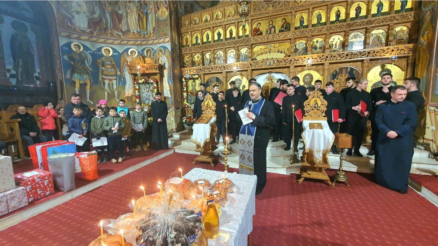După slujba Vecerniei unită cu Litia, preoții şi credincioşii prezenți au primit vestea cea mare a Naşterii Domnului prin colind, de la un grup de copii proveniți din familii defavorizate din Parohia Valea Ursului! În cadrul proiectului eparhial "Fii dar din Darul Lui Dumnezeu", aflat la cea de-a patra ediție, credincioşi cu suflet mare au oferit daruri colindătorilor.
