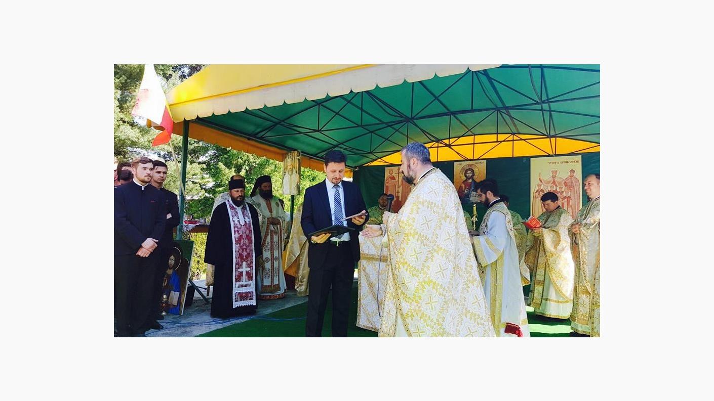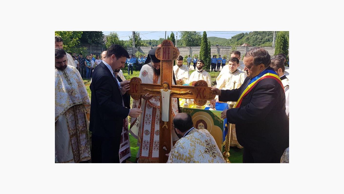 Slujba de sfinţire a locului noii biserici şi aşezarea pietrei de temelie pentru ridicarea acesteia au fost oficiate de un sobor de preoţi sub protia părintelui Vicar al Arhiepiscopiei Romanului şi Bacăului, Pimen Costea, şi a părintelui Protoiereu al Protoieriei Oneşti, Ioan Bârgăoanu.