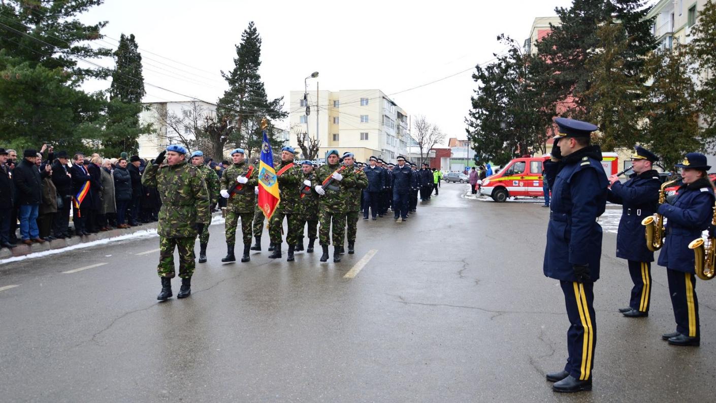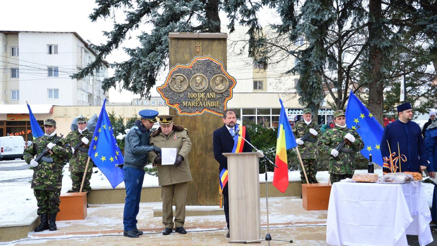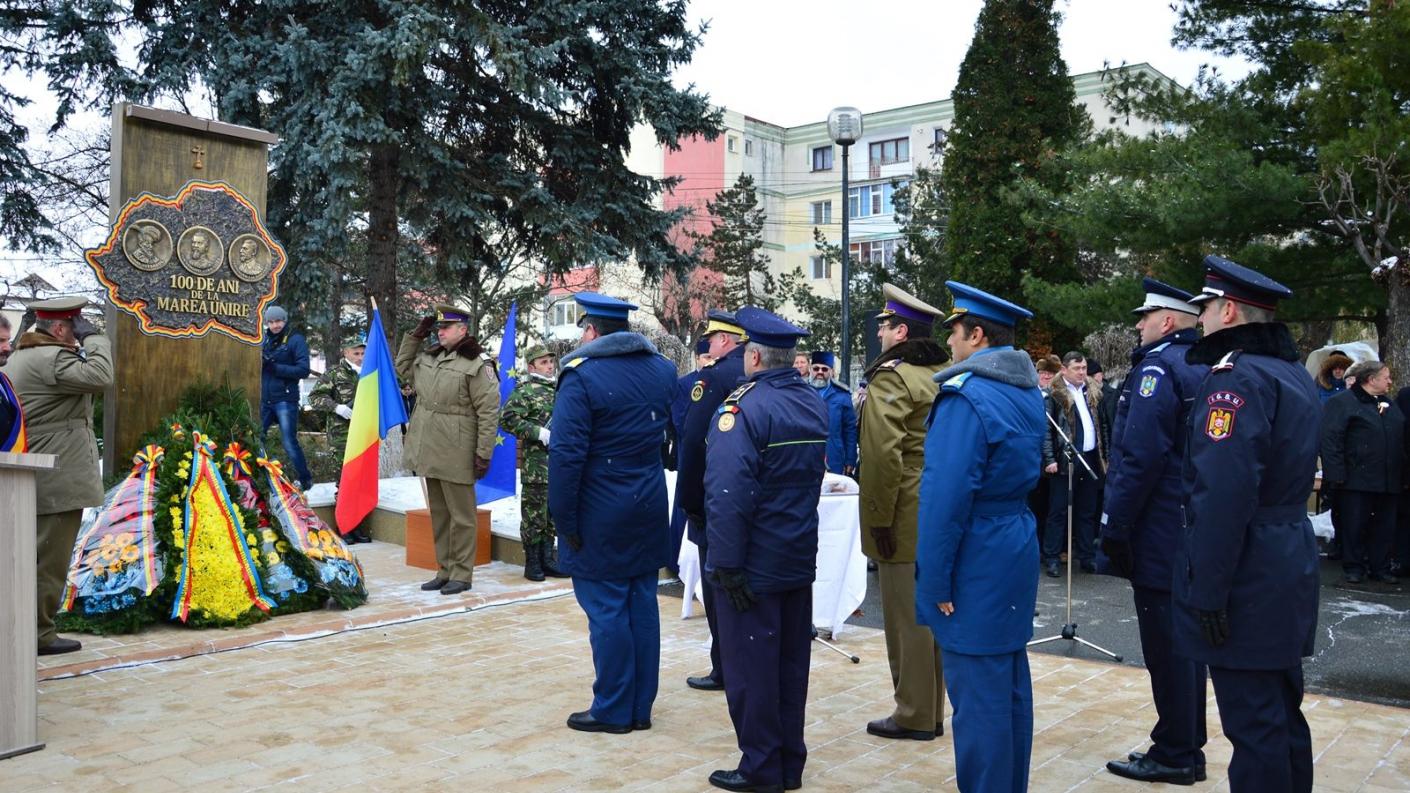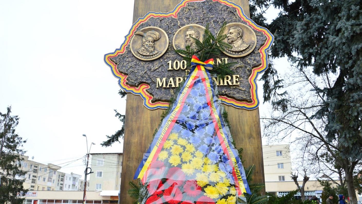 Manifestările au continuat cu festivitatea de depunere de coroane de flori la Monumentul dedicat Centenarului Marii Uniri.