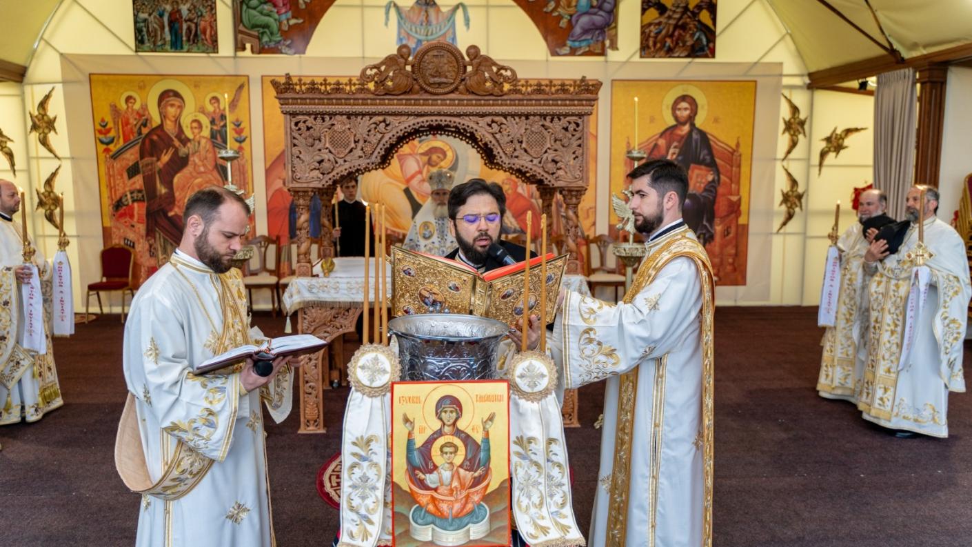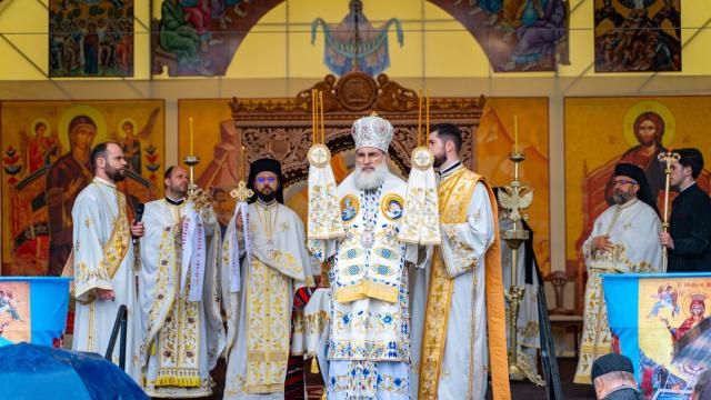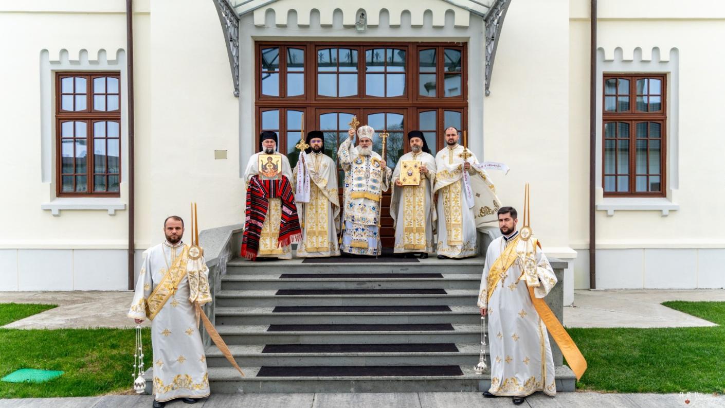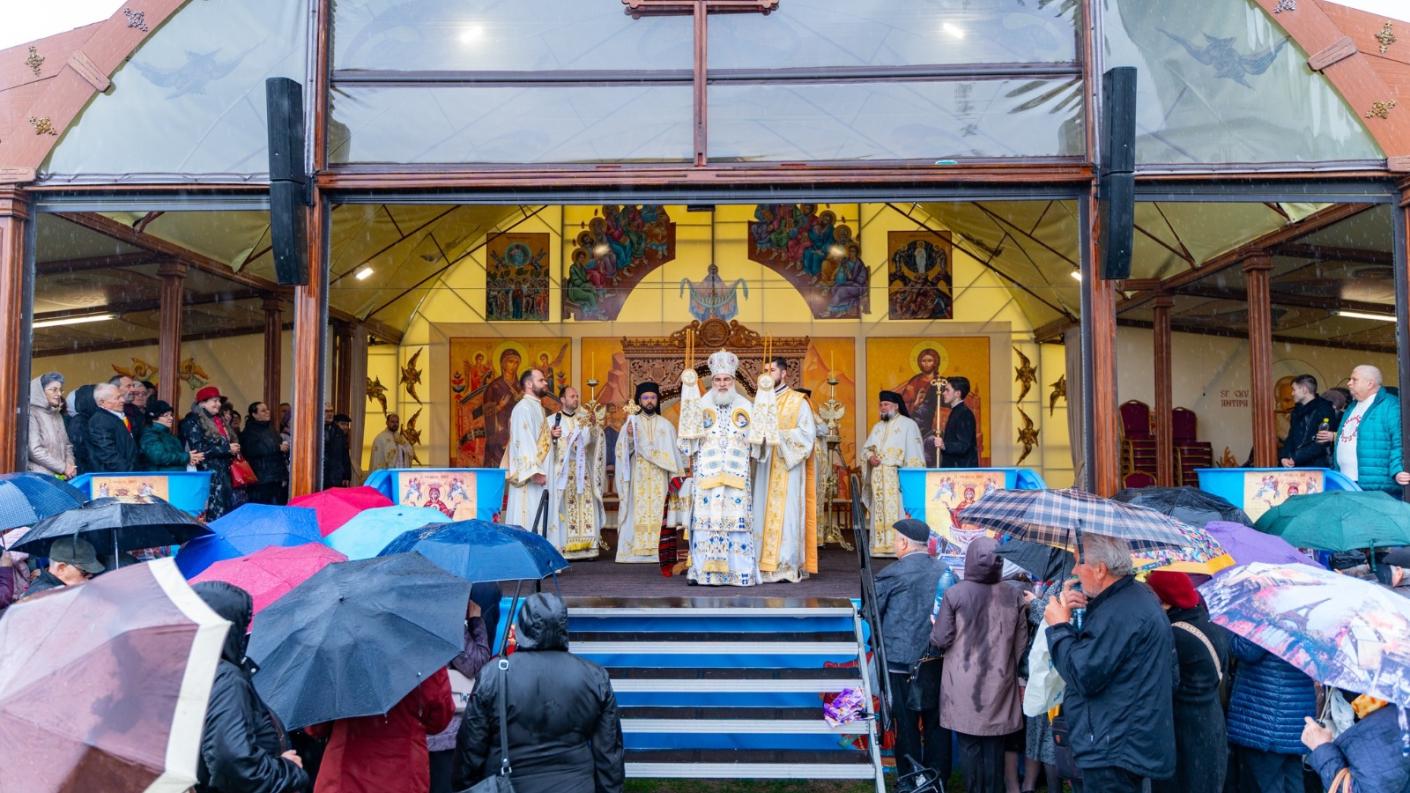 La finalul Sfintei Liturghii, preoții și credincioșii prezenți în Catedrala arhiepiscopală, în sunetul clopotelor și al sfintelor cântări, s-au deplasat spre Altarul de vară care întregește ansamblul ecleziastic al Centrului Eparhial, acolo unde Înaltpreasfințitul Părinte Arhiepiscop Ioachim a sfințit apa după rânduiala specifică a acestei sărbători din Săptămâna Luminată, apoi i-a binecuvântat pe credincioși.