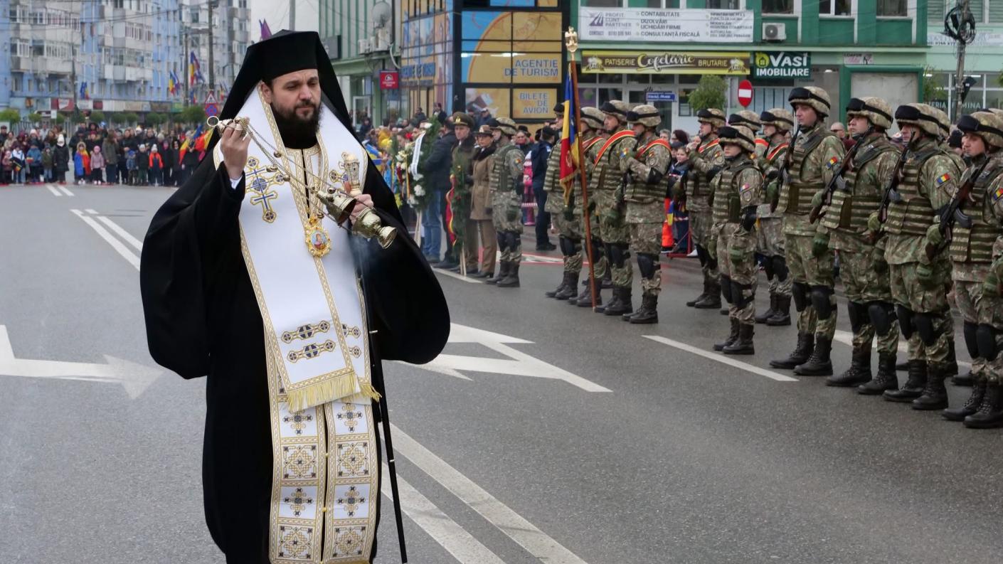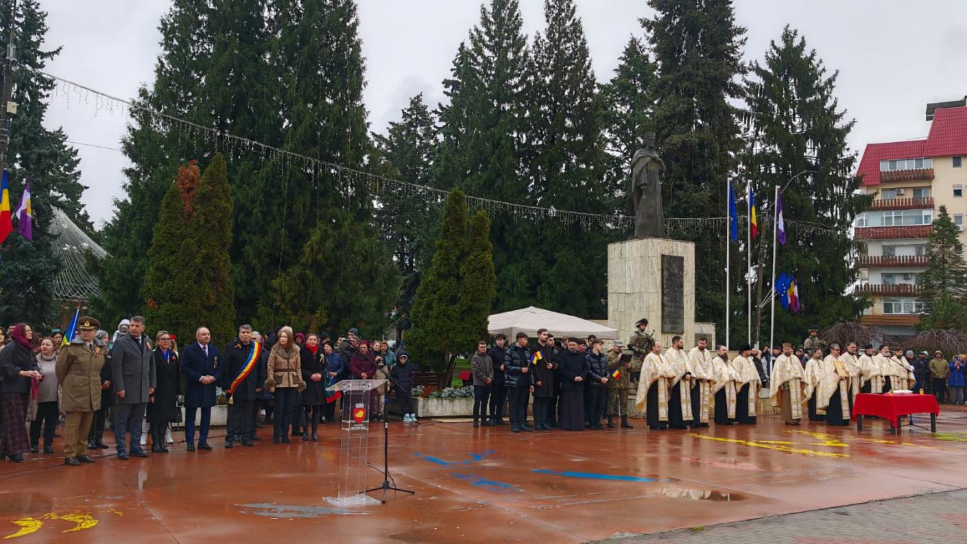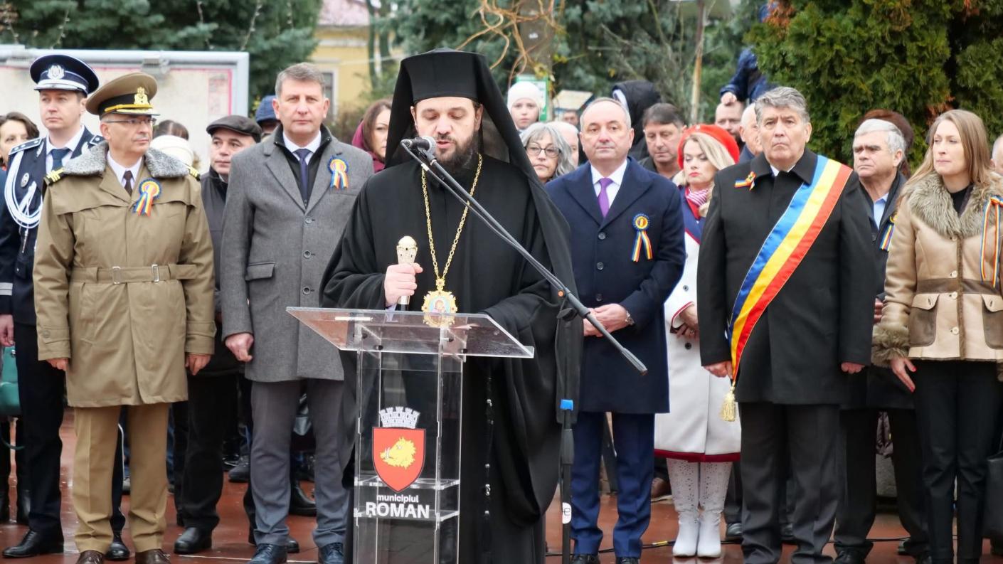 Apoi, începând cu ora 10.00, manifestările au continuat în Piața „Roman Mușat”, unde Preasfințitul Părinte Teofil Trotușanul, Episcop-vicar al Arhiepiscopiei Romanului și Bacăului, a participat, alături de oficialități centrale și locale, de reprezentanți ai Armatei, de preoți, de cadre didactice și elevi de la unitățile școlare romașcane, precum și de numeroși romașcani, la sărbătoarea prilejuită de acest înălțător moment.