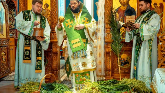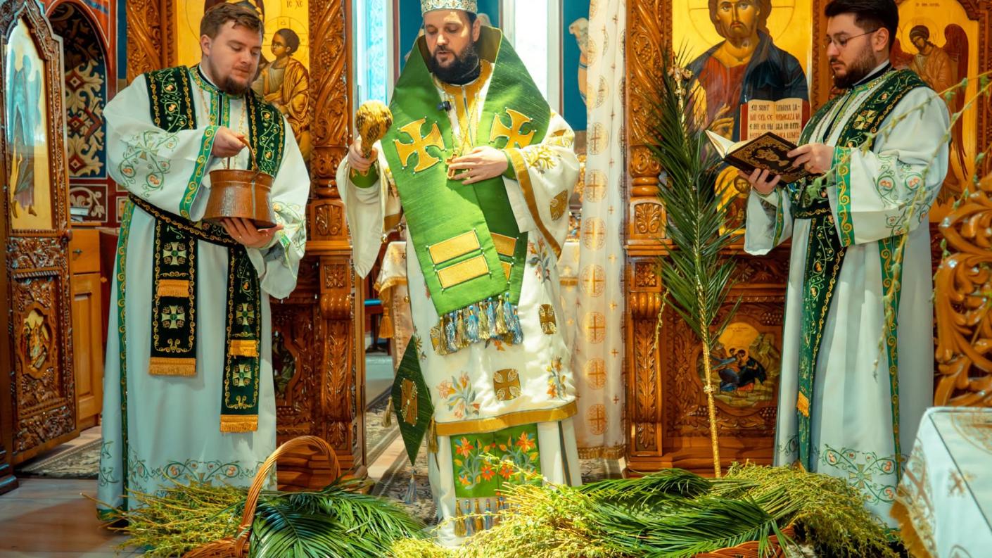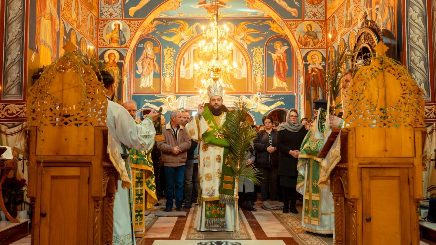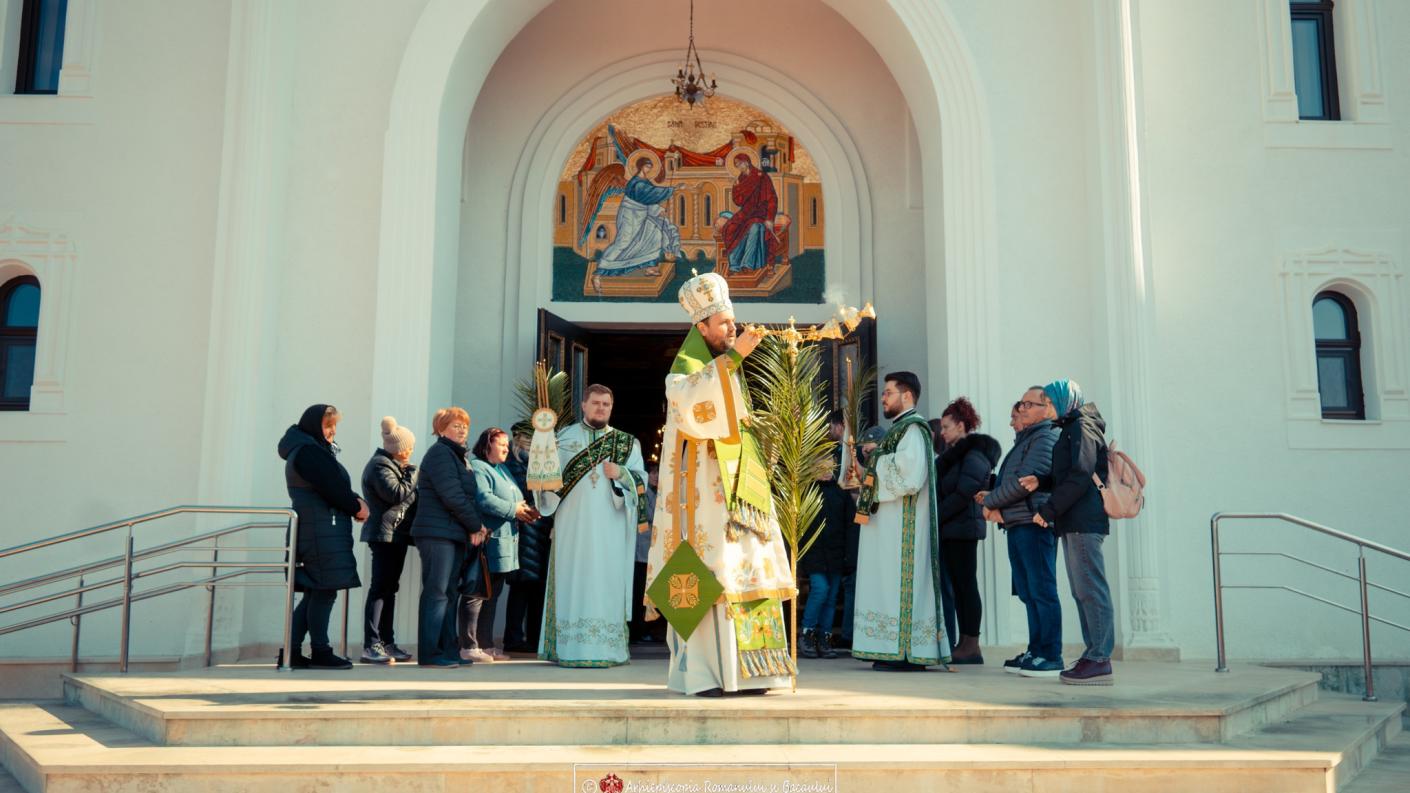 După Rugăciunea Amvonului, Preasfințitul Părinte Teofil a sfințit ramurile de salcie, care au fost împărțite credincioșilor prezenți, împreună cu anafura, ca semn al binecuvântării și al bucuriei sărbătorii Intrării Domnului în Ierusalim. (Mioara Ignat)