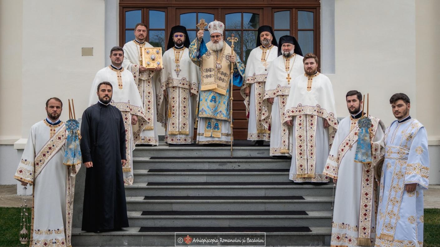 Sâmbătă, 8 noiembrie, în ziua de pomenire a Sfinților Arhangheli Mihail și Gavriil, înconjurat de soborul preoților și diaconilor Catedralei Arhiepiscopale din Roman, Înaltpreasfințitul Părinte Arhiepiscop Ioachim a oficiat Sfânta și Dumnezeiasca Liturghie.