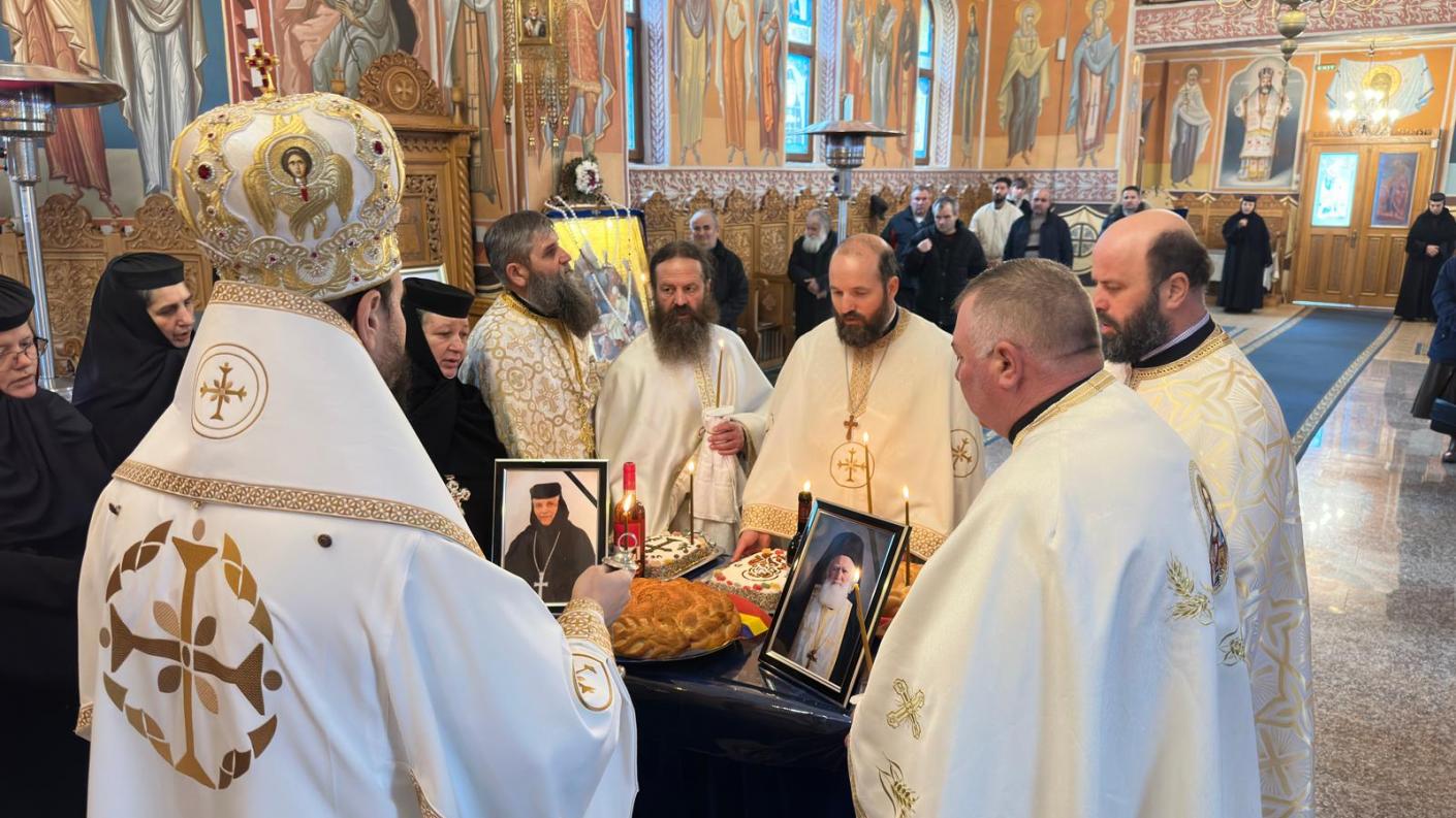 În cadrul Sfintei Liturghii, ierarhul a săvârșit slujba de pomenire pentru protosinghelul Mihail Velea și stavrofora Evlampia Corciu, reinițiatorii vieții monahale în această zonă, începând cu anul 1991.