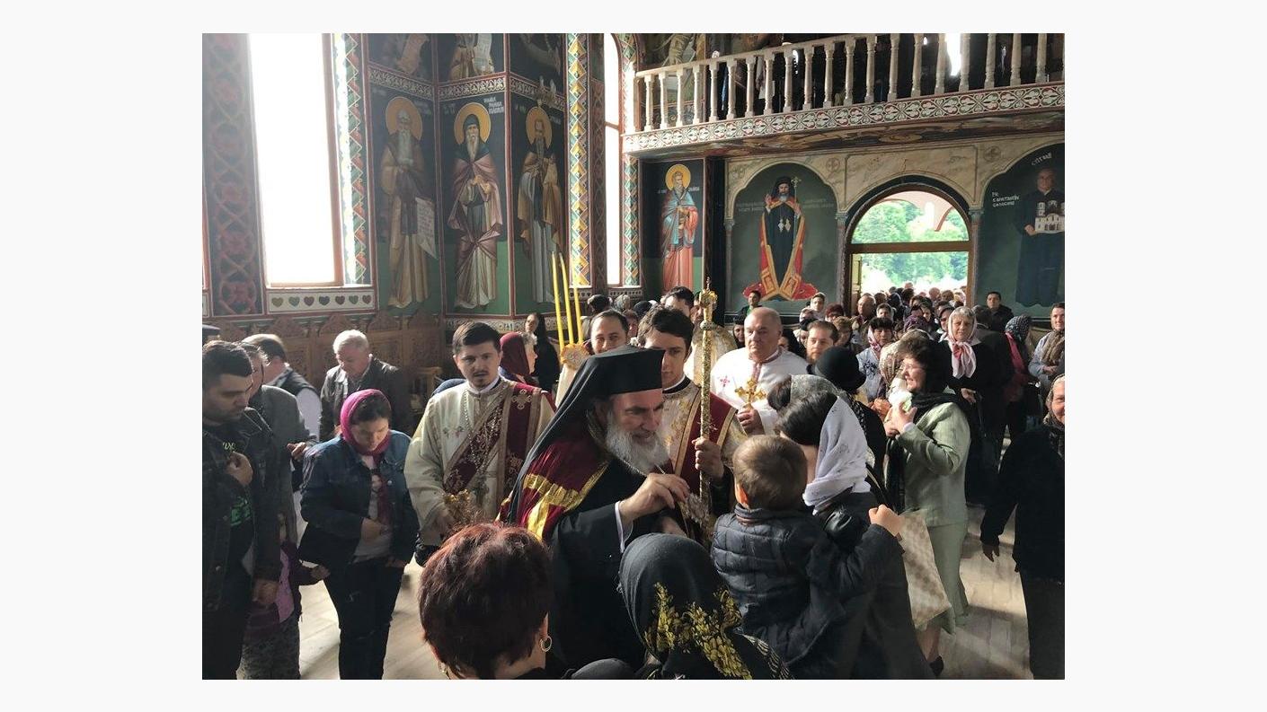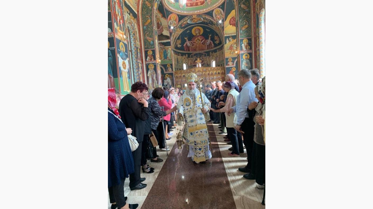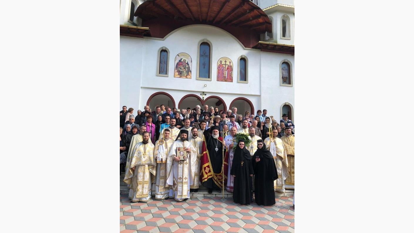 Încă de la primele ore ale dimineții, Înaltpreasfinția Sa a poposit mai întâi la Catedrala “Pogorârea Sfântului Duh” din Onești unde l-a felicitat pe părintele Constantin Alupei cu prilejul sărbătorii, binecuvântând credincioșii prezenți și lucrările ce se săvârșesc la acest sfânt locaș.
