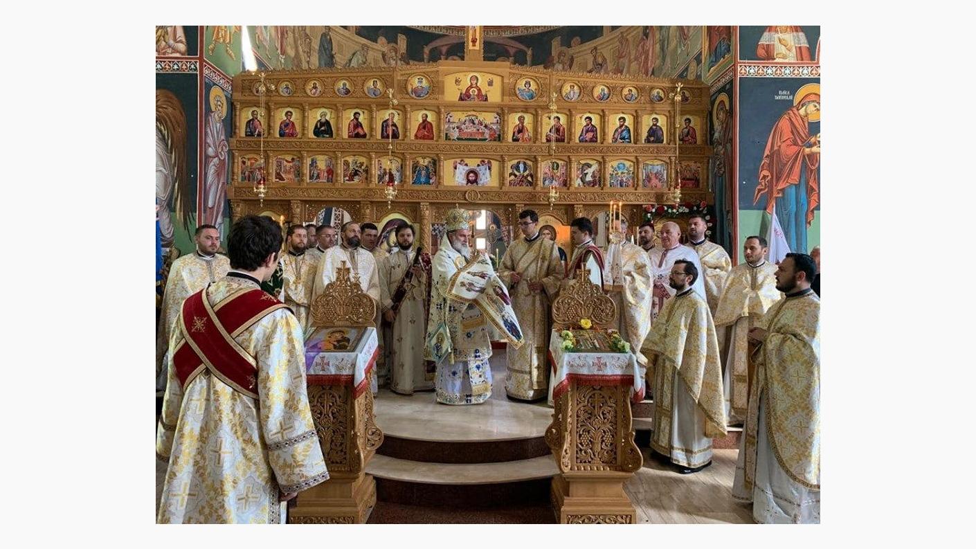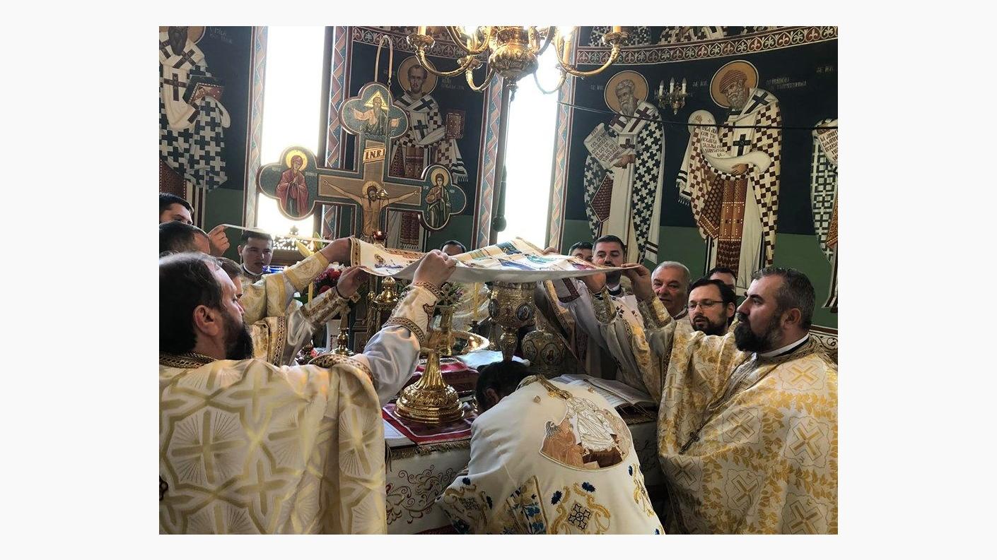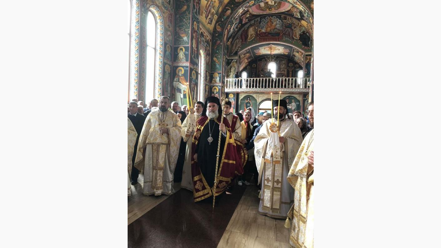 Încă de la primele ore ale dimineții, Înaltpreasfinția Sa a poposit mai întâi la Catedrala “Pogorârea Sfântului Duh” din Onești unde l-a felicitat pe părintele Constantin Alupei cu prilejul sărbătorii, binecuvântând credincioșii prezenți și lucrările ce se săvârșesc la acest sfânt locaș.