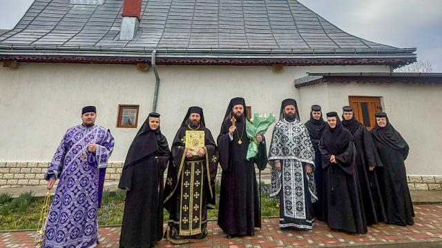 La finalul Sfintei Liturghii au fost rostite rugăciuni de dezlegare, specifice perioadei Postului Mare, pentru obștea maicilor, dar și pentru pelerinii prezenți.