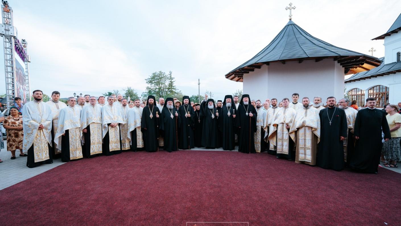 Încă de la primele ore ale dimineții, soborul celor șase ierarhi, la care s-a adăugat și Preasfințitul Părinte Ioan Casian, Episcop al Episcopiei Ortodoxe a Canadei, a fost întâmpinat la intrarea în incinta ansamblului eclezial cu pâine și sare, semne ale ospitalității românești, de ieromonahi, stareți și duhovnici ai mănăstirilor din Eparhia Romanului și Bacăului, preoți consilieri și inspectori din administrația eparhială, protopopi, preoți, preacuvioase maici starețe, precum și de credincioși și pelerini veniți din toate colțurile eparhiei pentru a participa la acest eveniment.