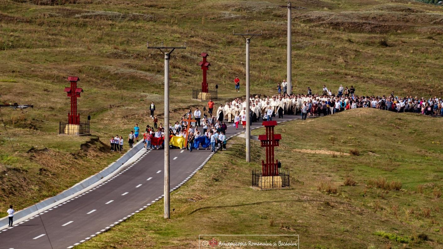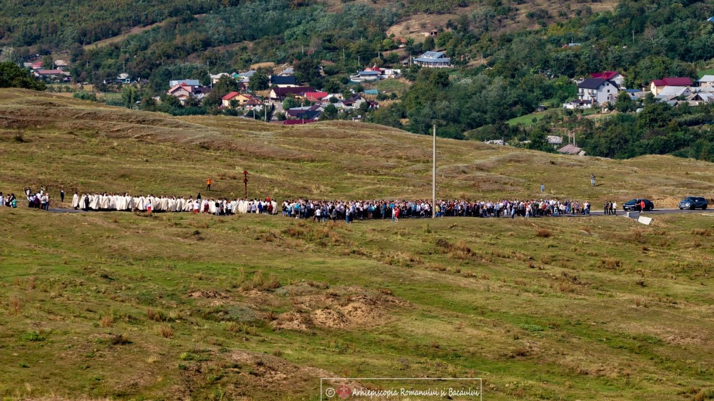 Sâmbătă, 13 septembrie 2025, Schitul „Sfântul Nicolae” – Muncel, comuna Ion Creangă, jud. Neamț, a fost gazda unui moment deosebit de spiritualitate și comuniune. În ajunul praznicului Înălțării Sfintei Cruci, sute de credincioși și peste 60 de preoți din protopopiatul Roman, coordonați de părintele protopop Dan-Alexandru Antoce, împreună cu preoți din administrația eparhială, au parcurs pe jos, alături de Preasfințitul Părinte Teofil Trotușanul, cei aproximativ doi kilometri ai Drumului Crucii, participând la tradiționalul pelerinaj Calea Crucii.