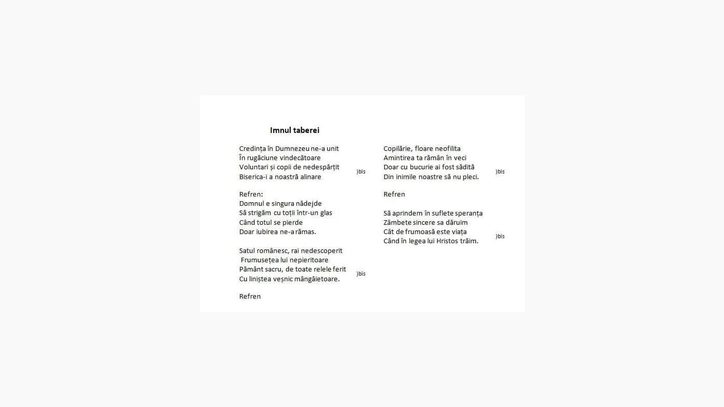 La finalul taberei, toată lumea a intonat imnul taberei, am rostit rugăciunea „Cuvine-se cu adevărat” și am primit arhiereasca și părinteasca binecuvântare a Înaltpreasfințitului Părinte Arhiepiscop Ioachim.