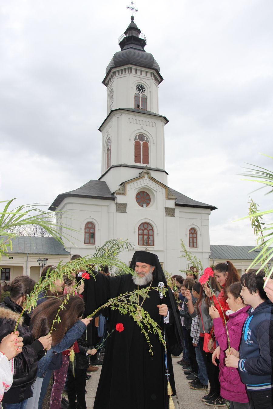 Credincioși, tineri și vârstnici, au participat la Catedrala Arhiepiscopală din Roman la Procesiunea din Duminica Floriilor