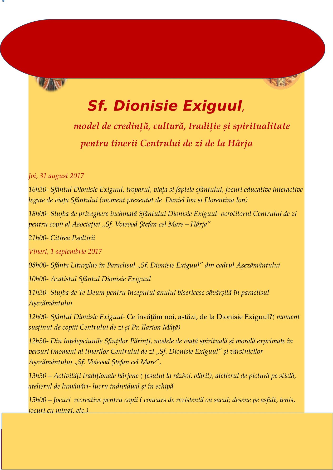 Cinstirea Sf. Dionisie Exiguul și debutul Anului bisericesc la Asociația „Sf. Voievod Ștefan cel Mare - Hârja”