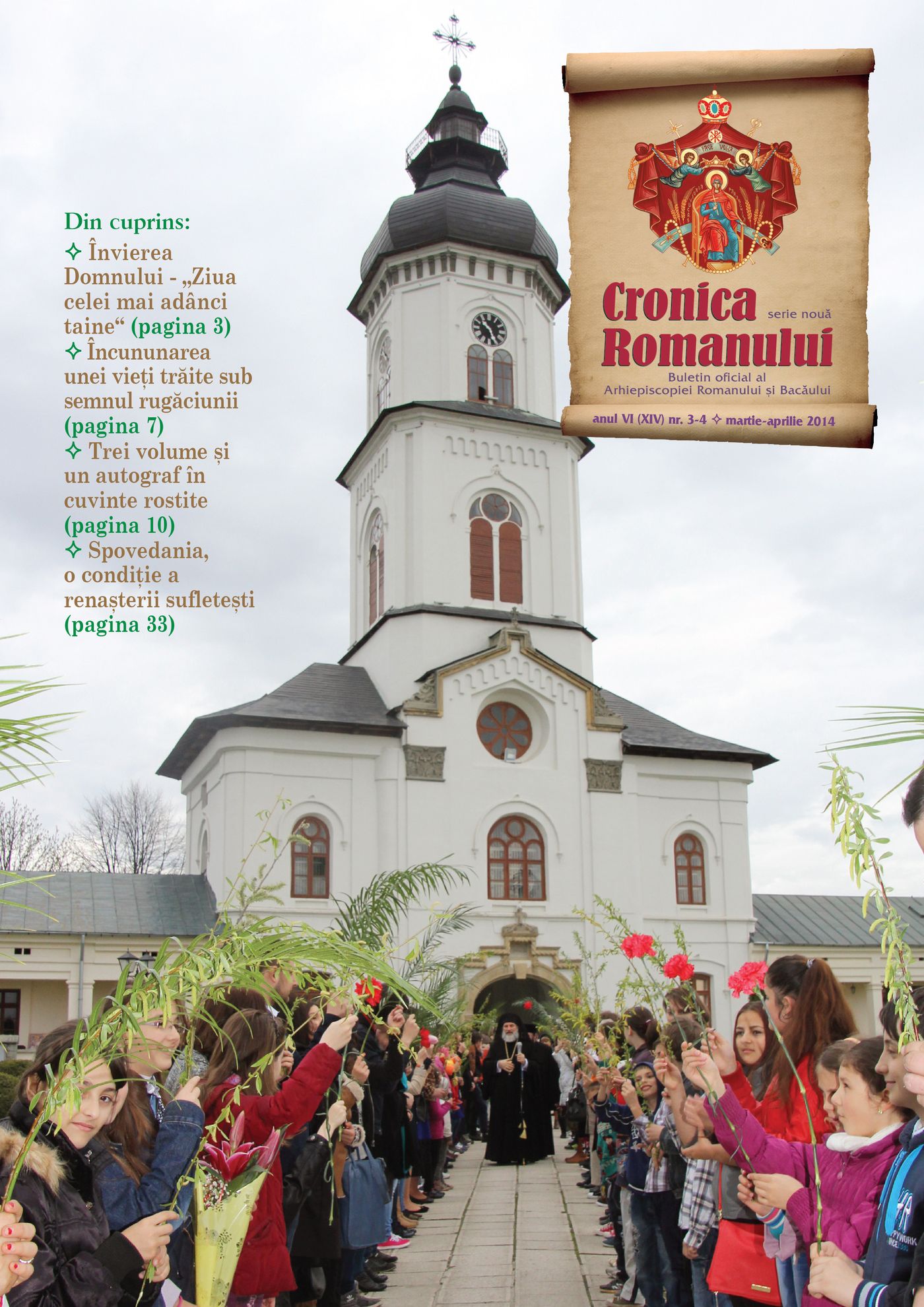 Numărul pentru lunile martie şi aprilie 2014 al Cronicii Romanului - buletinul oficial al Arhiepiscopiei Romanului şi Bacăului poate fi citit şi pe...