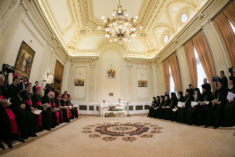Papa Francisc către ierarhii ortodocşi români: Am venit aici ca pelerin ce dorește să vadă chipul Domnului în chipul fraților