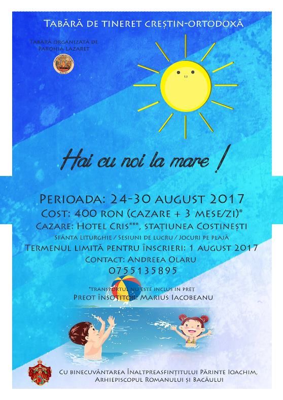 Parohia Ortodoxă "Lazaret" invită tinerii băcăuani, și în acest an, să participe la activitățile din cadrul taberei creștin - ortodoxe de la...