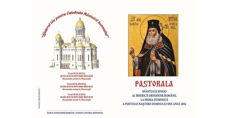Pastorală la prima Duminică din Postul Nașterii Domnului 2016